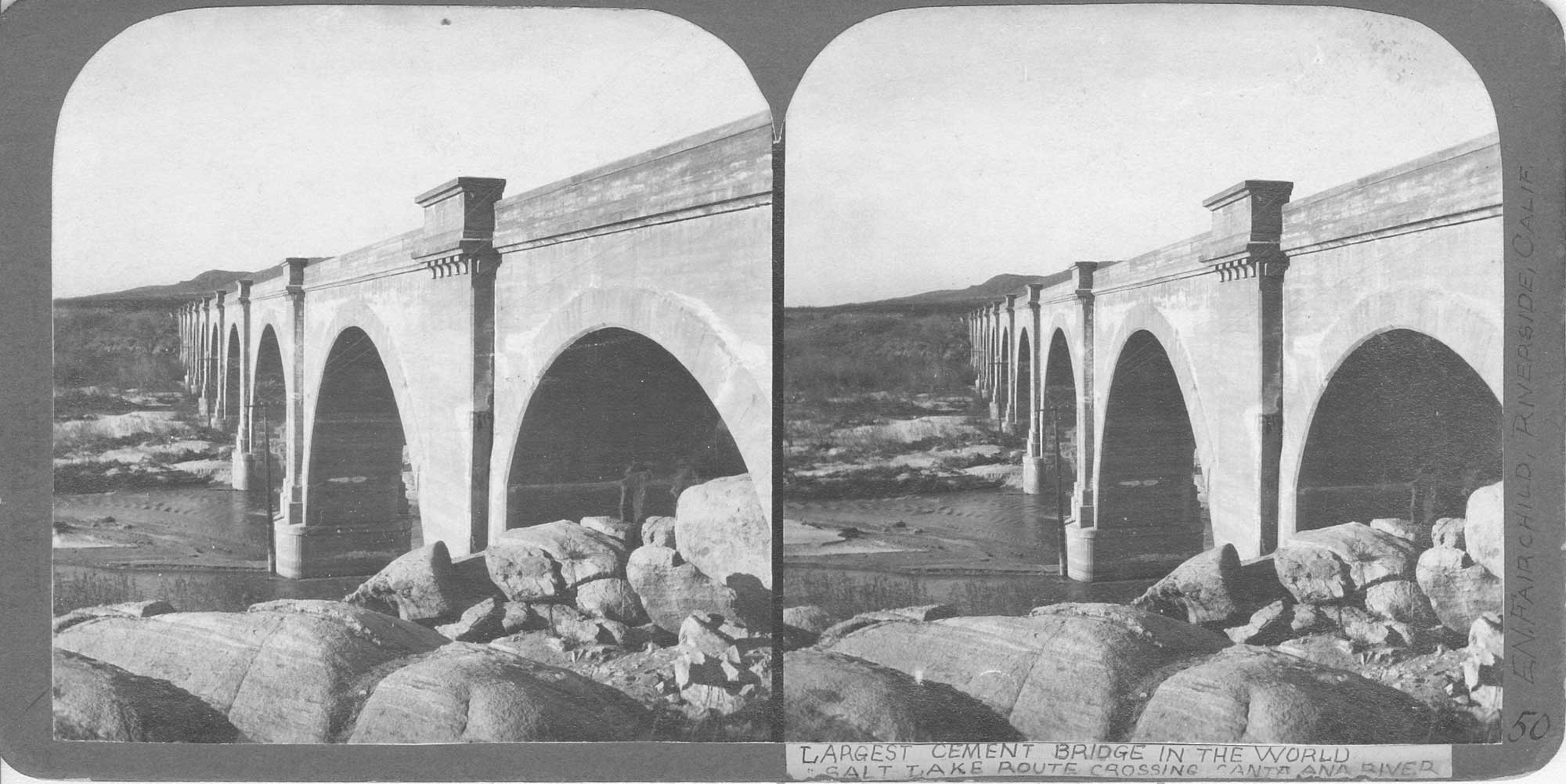 With the completion of the bridge, the Pachappa Hill cut, and the new depot, special ceremonies were held on Saturday, March 12, 1904, officially welcoming the Salt Lake Railroad to the city of Riverside. Mayor C. L. McFarland extended greetings from the city to the new rail line. Riverside had the longest concrete bridge in the world!
