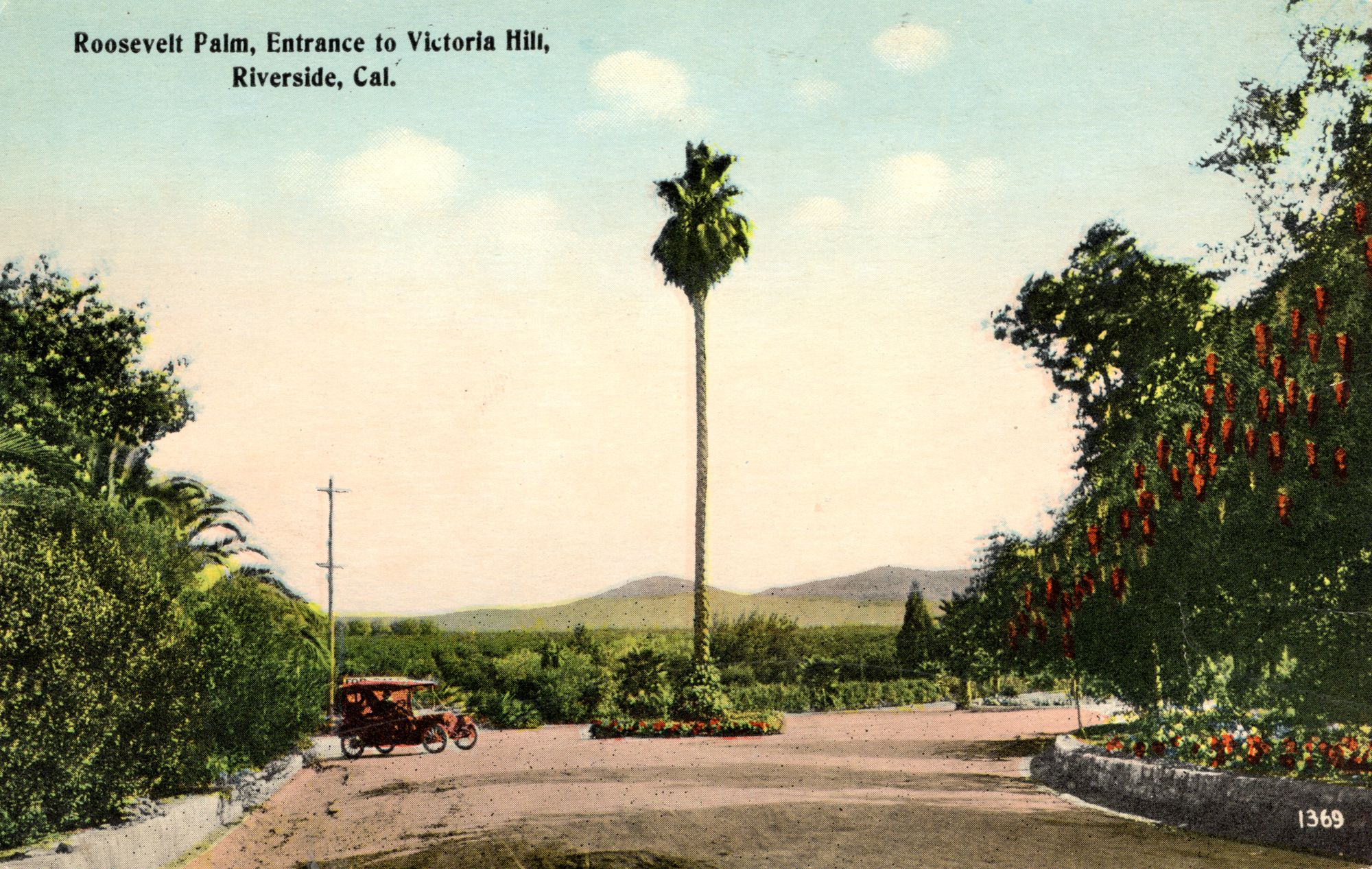 For many years Riversiders remembered the exciting visit that President Teddy Roosevelt made to our city Whenever they saw the orange tree in front of the Old Adobe or when they traveled Victoria Avenue and looked at the towering palm tree at the intersection near Elsinore Road. Today we can still commemorate Teddy’s visit with a trip to the Roosevelt Palm on Victoria Avenue.