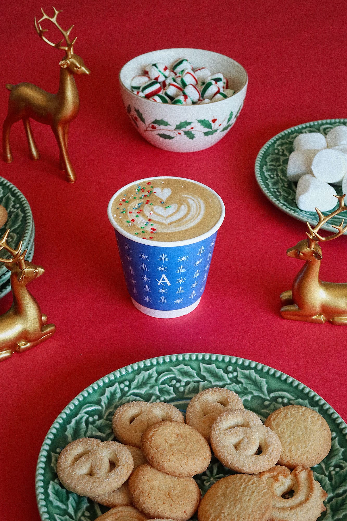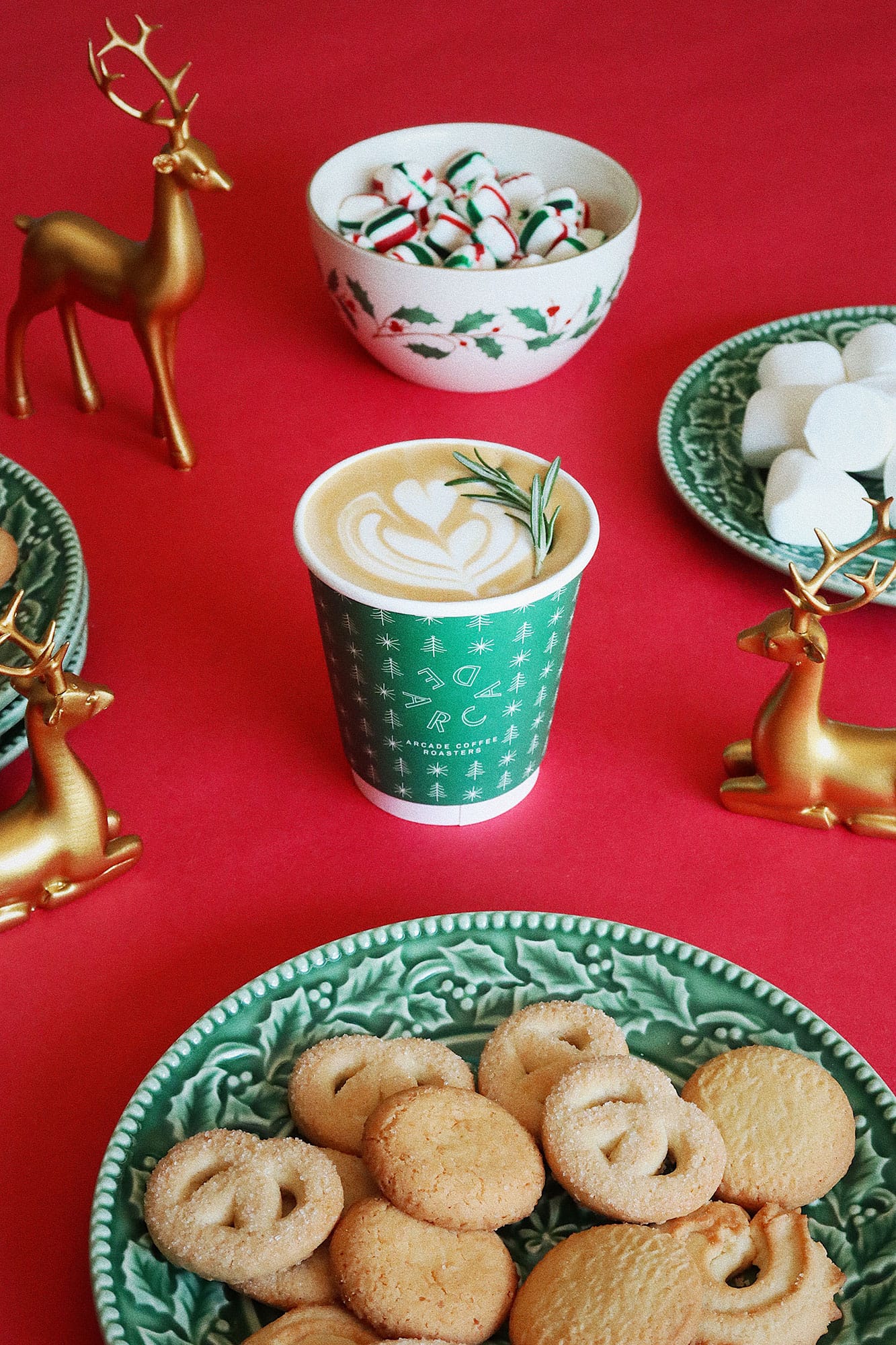 Arcade's holiday drinks menu, which launched in early November, features both returning favorites and new seasonal offerings. This year marks the first time Arcade is offering custom holiday-themed to-go cups.
