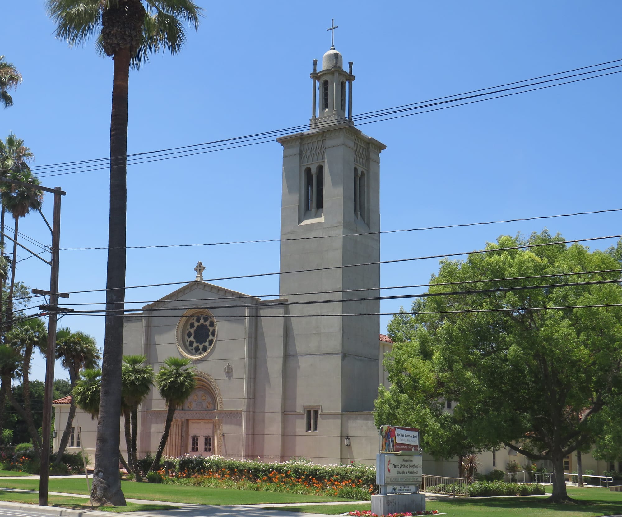 An interesting detail is that the bell in the Peace Tower, which rang out on this day, originally hung in the steeple of the Methodist Church in its former location in downtown Riverside on the northeast corner of Orange and Sixth streets. On this day, the newer bell in the First Methodist Church (now First United Methodist Church, located at 4845 Brockton Ave.) rang out simultaneously.