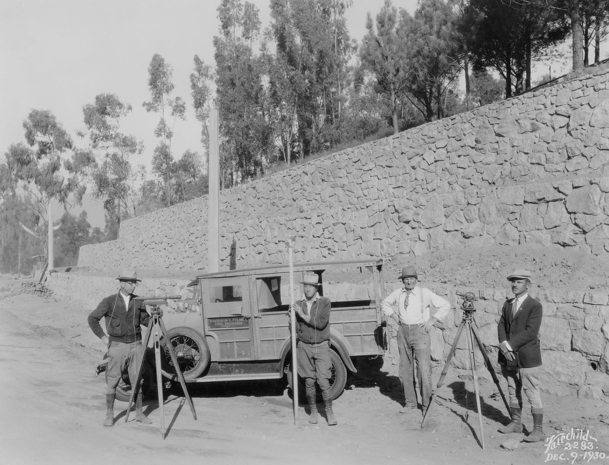 In keeping with many Depression-era projects, local firms and labor were used. Riversiders J. F. Davidson and Alfred Fulmor made the design. The construction contractor was the Matich Brothers, and the stones were cut from the Bly Brothers and McGillard quarry in the Jurupa Hills (later the Stringfellow quarry). The road was widened, the grade reduced and the curves banked. The work included the installation of terraces supported by ornamental rock retaining walls, pyracantha hedges and Raincross streetlights.