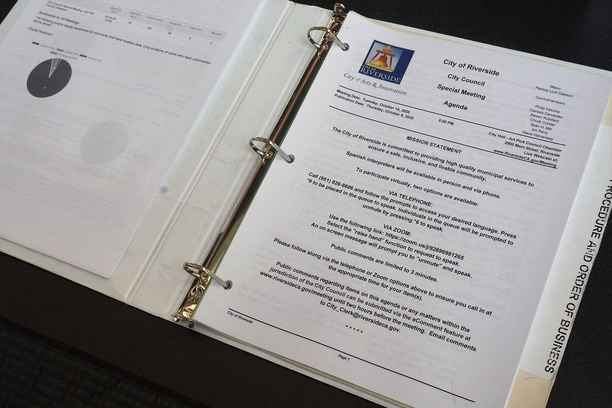 The Riverside City Council passed a resolution Tuesday night affirming the importance of transparency and identification standards in federal immigration enforcement activities within the city. The resolution passed with a 4-3 vote after more than three hours of public testimony from over 60 speakers.