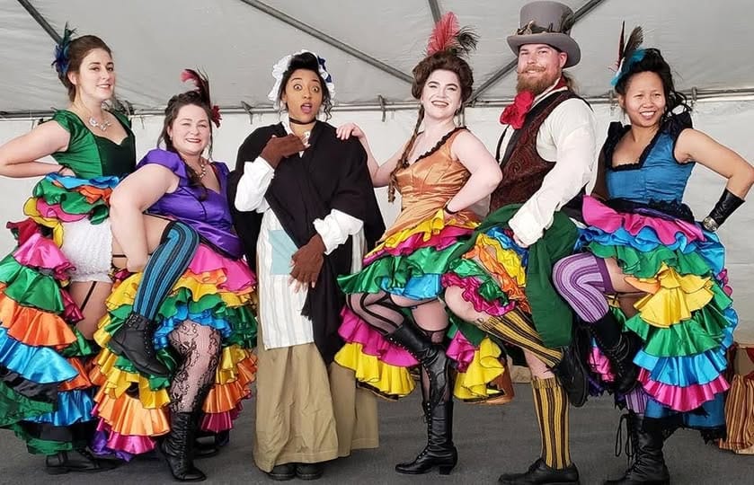 Entertainment includes performances by the Sweetwater Creek Band, the Merry Wives of Windsor, the Limónadas Dance Company and pyrojuggler Thomas Wood. Character appearances include Mr. Pickwick, the Red Queen, the Mad Hatter and Jane Austen.