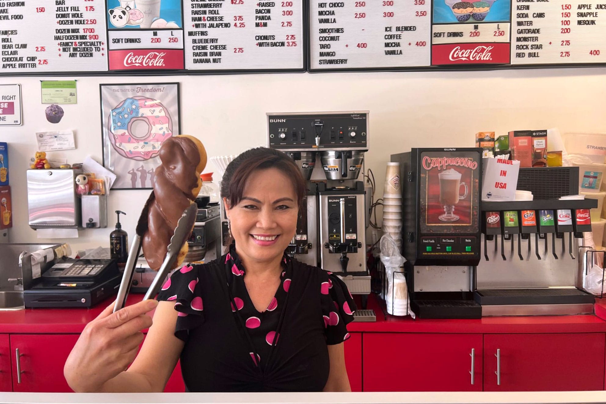 “They make a few different mixes, some that are better and some that are worse but they all have milk and eggs. You just add water and mix it up to get the donut dough”. Her husband, Steve Chhour (the shop’s namesake), emerged from the kitchen to confirm, “It’s true! Different donut shops use different mixes - it’s possible to make a bad donut from the premium mix, but it’s not as easy to make a good one from the cheap mix”. “That’s right,” Linda confirmed, “not all mixes are the same, but every donut shop in Riverside uses them, 100%, so good luck finding a non-dairy option.”
