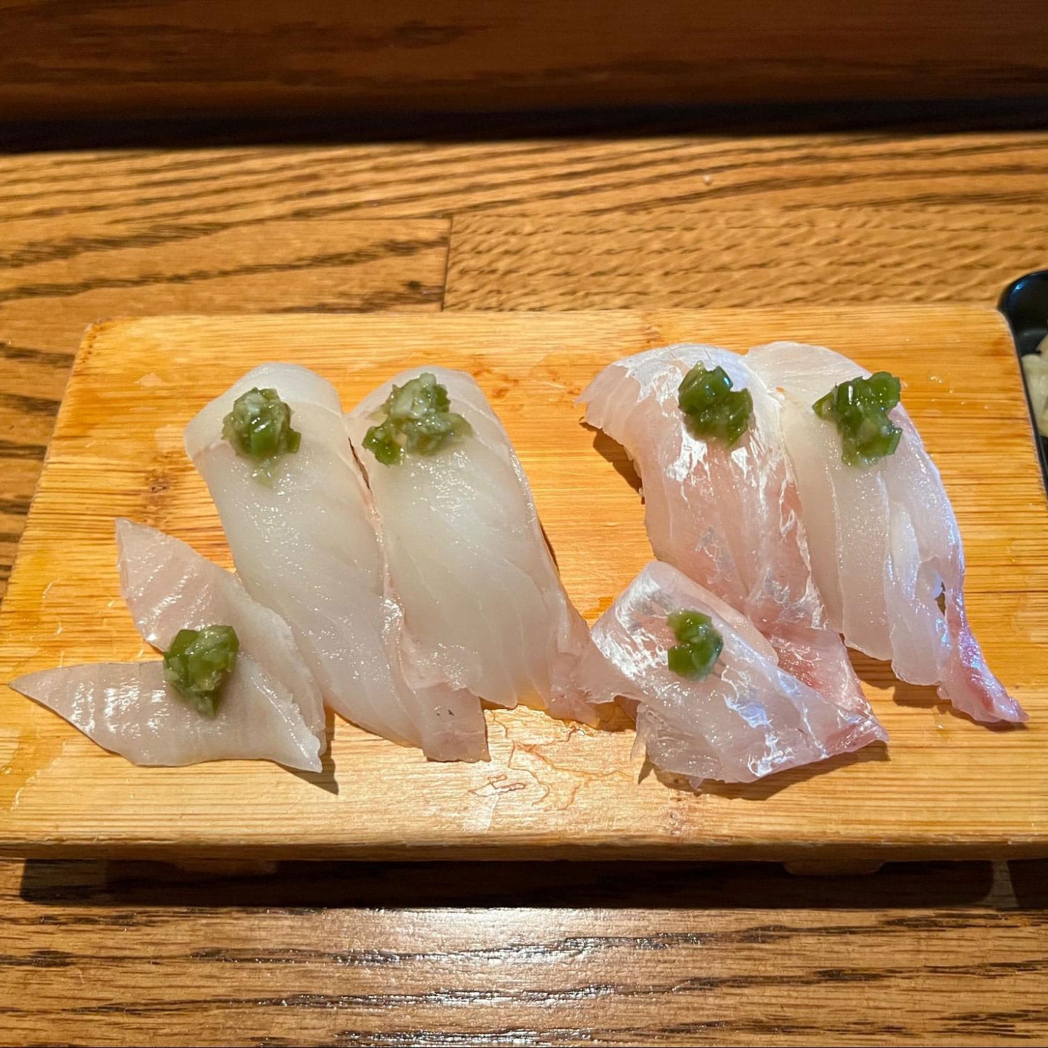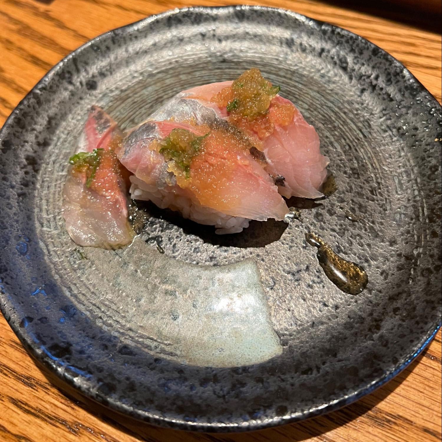 I really like their nigiri -Choi and his team of sushi chefs have a skilled hand with a knife, carving out tender slabs of fresh fish to top well-formed batons of flavorful sushi rice. They pay attention to the small details - usually slicing off an extra piece of fish at no additional charge as a sashimi lagniappe with each pair of nigiri and garnishing each piece with creative flair. On a recent visit, explosive dabs of ginger-marinated fresh wasabi adorned my orders of Spanish mackerel, halibut, and red snapper, offering an eye-watering burst of flavor to the silken seafood.