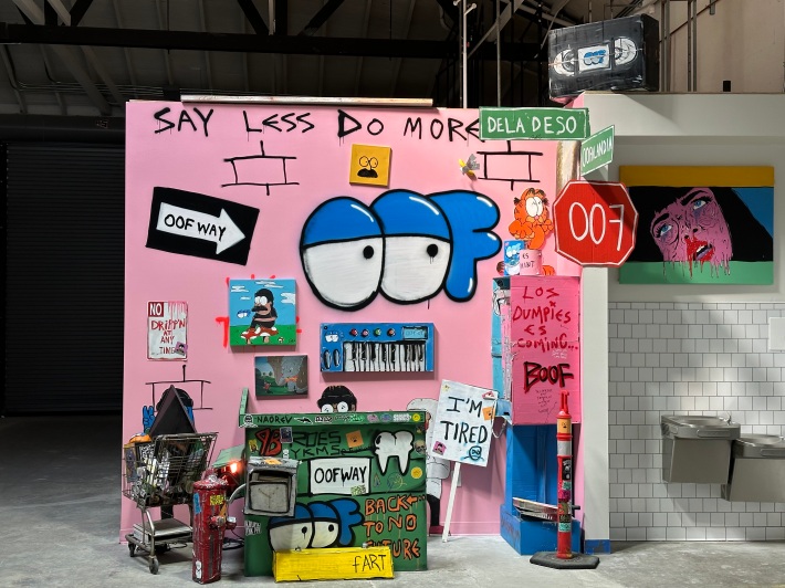 The Raincross District, which will celebrate a grand opening in March, is currently home to 11 vendors with room for ten more. Wall space is made available for free to local artists, like Julie Rose of the Eastside Art House, to exhibit and sell their work. Riverside’s Richie Velazquez, better known as Deladeso, installed some of his slime and grime work.