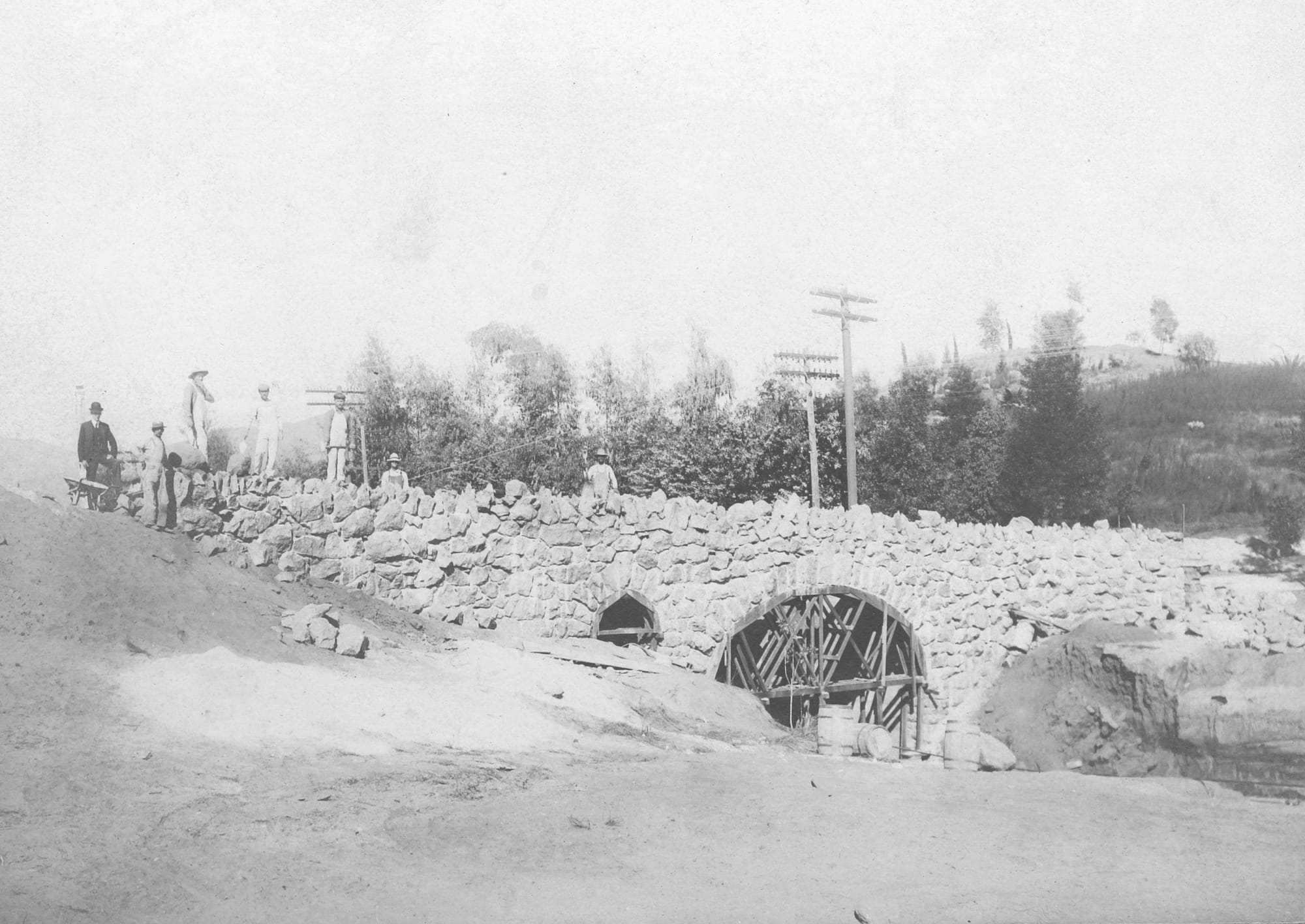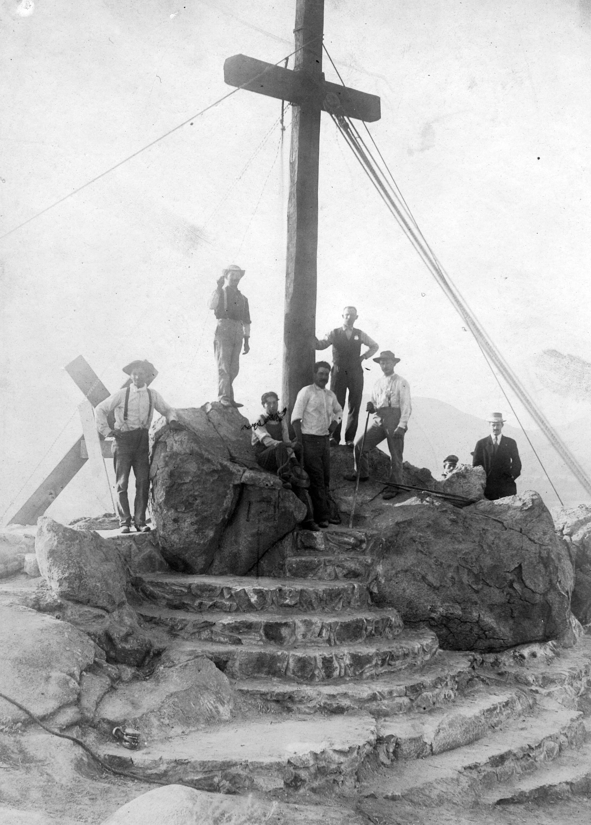 The next major project that Gunnar Kjellberg supervised was again connected with Mount Rubidoux. In 1903, Frank Miller completed the first wing of the Mission Inn. Then, in 1906, the Huntington Park Association was incorporated to develop lots at the base of the mountain and to construct a park with a road up the mountain for Miller's guests to tour. Later in 1906, Miller built the Glenwood Mission Garage on Seventh and Market and purchased 10 touring cars. Miller had already obtained the services of Major Hiram Chittenden of the Army Corps of Engineers to design the road. Chittenden arrived in Riverside at the end of February in 1906 and soon had plans for a road up and down the mountain. Gunnar Kjellberg was hired as foreman in charge of a crew that constructed much of the road and the stone bridge over Buena Vista Drive, which gave entrance to the mountain road. Riversider Roy Haglund recounted how, as a boy, he attempted to climb the mountain one day during the construction days but was chased off by Kjellberg. The crew was blasting that day, and Mr. Kjellberg, as foreman, took his duties seriously and did not wish anyone to be hurt. A year later, in 1907, Gunnar was again in charge of the crew that erected the cross on the peak of Mount Rubidoux.