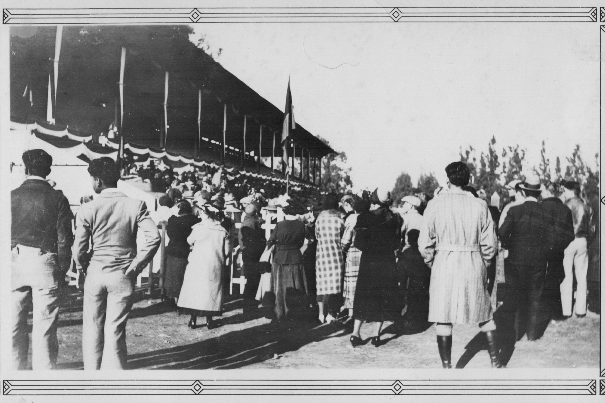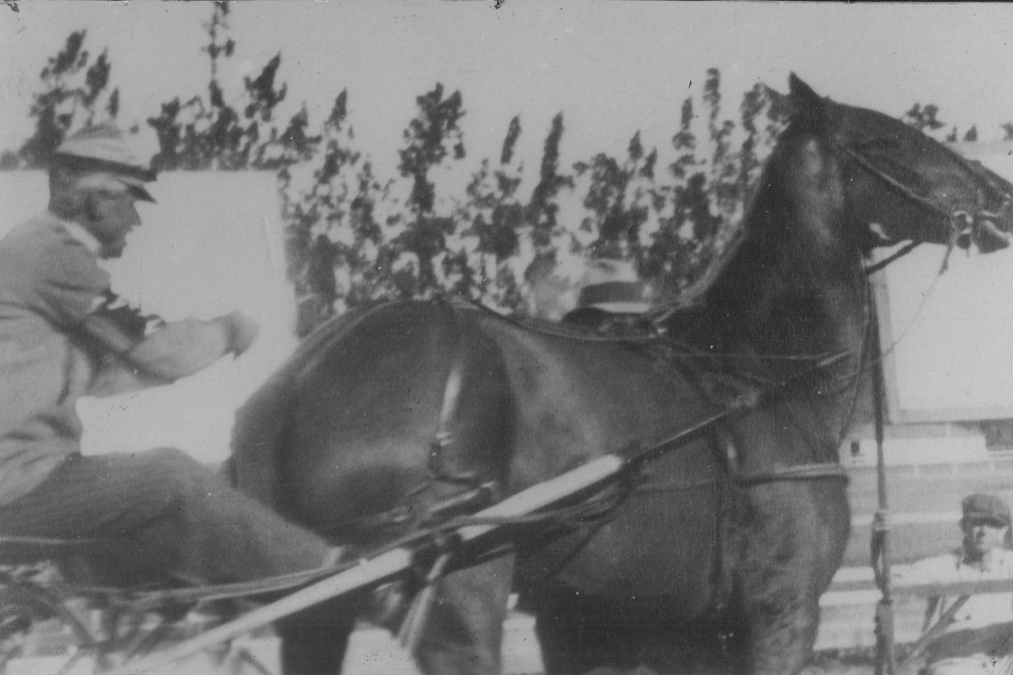 In his weekly newspaper letter column, Will Rogers gave Riverside a boost when he wrote: "Did you ever drive one of those 'sulkys' in a trotting horse race? Well, they got old David Harum sitting straddle of a horse's tail out here on the Riverside track, and if you think that hasn't got it on the all auto driving, you are wrong."