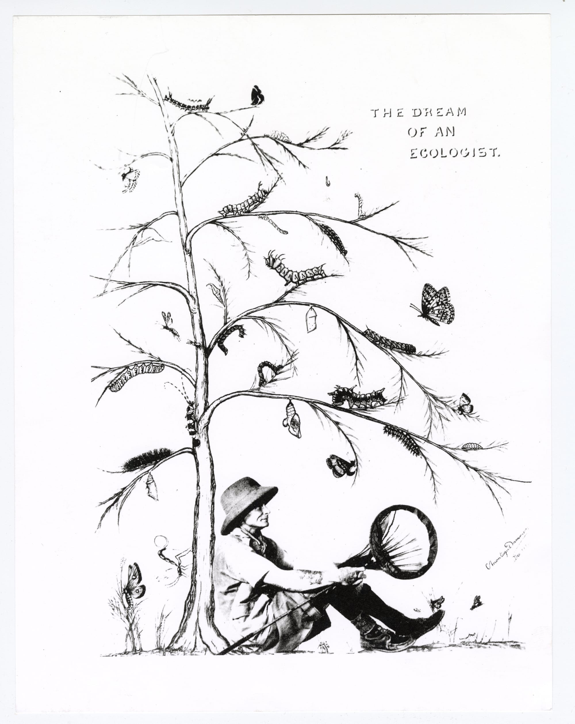 Charles Montagu Dammers left behind a rich visual record of his life and work. His detailed butterfly illustrations and the whimsical "Dream of an Ecologist" — in which he depicted himself surrounded by butterflies at all stages of development — reveal a man equally devoted to science and art. A self-portrait signed in 1915 captures him years before he made Riverside his home. (Courtesy of the Museum of Riverside)