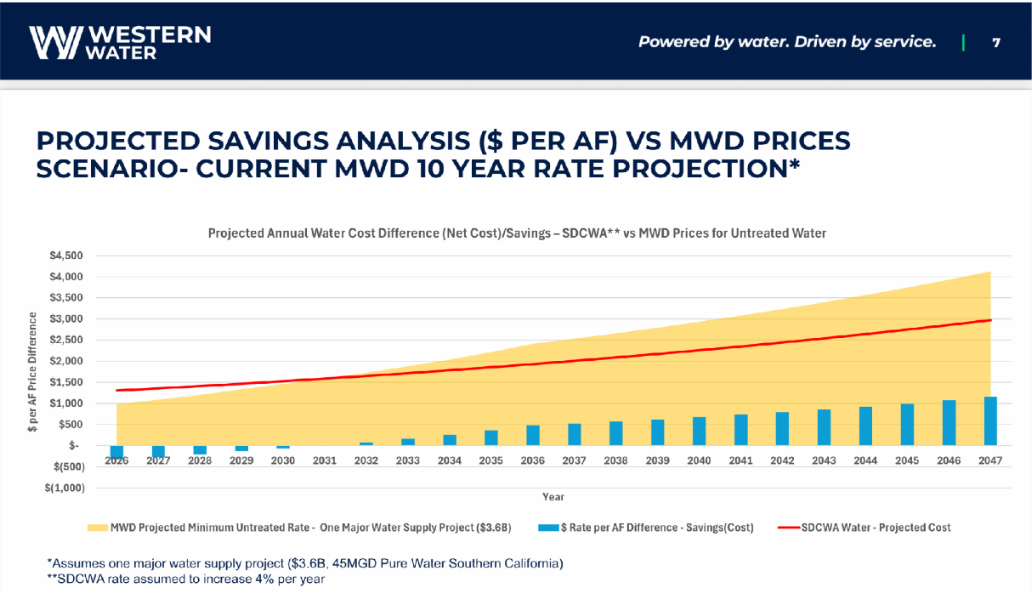 This agreement will provide Western Water customers significantly more water security and drought resiliency and save more than $49 million in water costs by 2047. If the agreement extends to 2077, the savings will be dramatically higher.