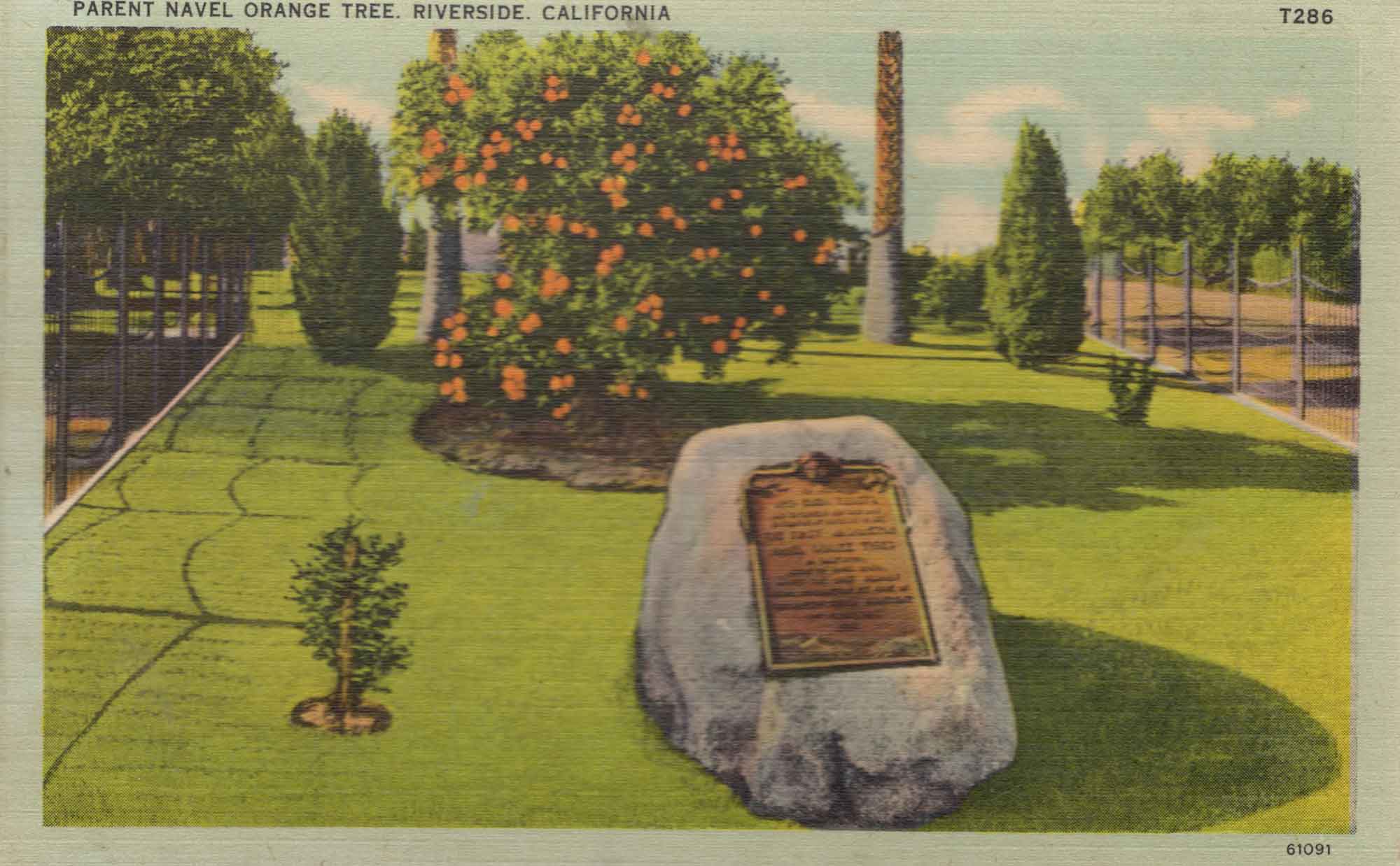 Riverside and oranges have a long and close relationship. In 1871, only one year after Riverside was founded, L. C. Waite bought four orange seedlings in Los Angeles and brought them to Riverside. K. D. Shugart planted the first one near his home at Mulberry and Ninth Streets. Two years later, in 1873, Eliza Tibbets planted the two original parent navel orange trees in her yard. The gigantic multi-million-dollar orange industry in Riverside took off.