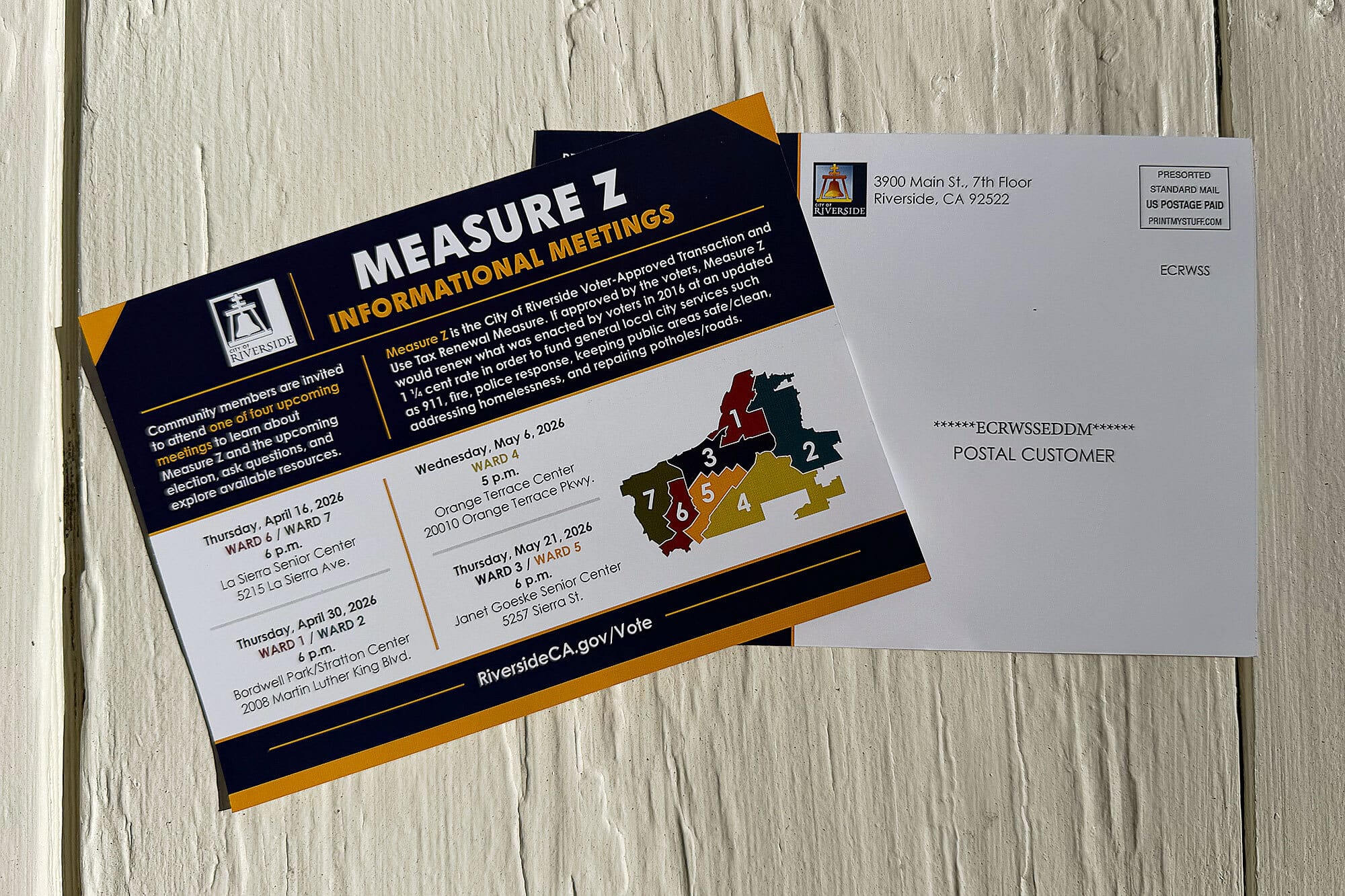 Riverside is hosting four neighborhood meetings to field questions about Measure Z, the sales tax renewal on the June 3 ballot.