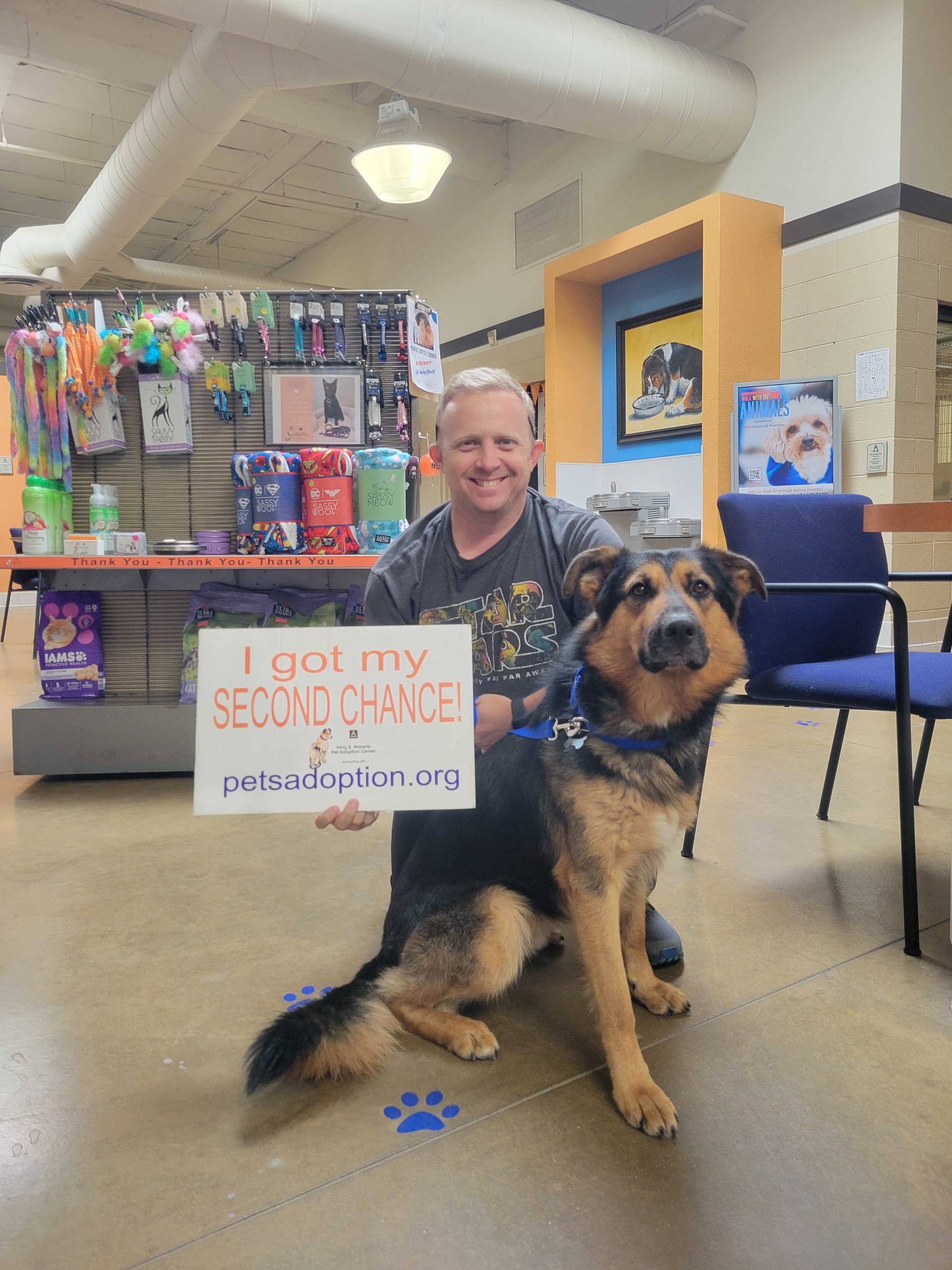 Tilly is a 5yr old Doberman mix with a gentle nature and an unbreakable spirit. After losing a hind leg earlier this year, sheโs adjusted incredibly well and continues to grow more confident every day. While spending time in a foster home, Tilly proved to be an easy companion, walking nicely on leash, settling in comfortably, and enjoying being near people. Sheโs sweet, friendly, affectionate, and ready to bring her calm, loving presence into her new home. Come meet Tilly and all the adoptable pets at the Mary S. Roberts Pet Adoption Center in person. Stop by any day except Tuesdays, from 12 p.m. to 7 p.m., or learn more at petsadoption.org. Alumni Update: Crosby (right) was adopted. ๐ฅณ