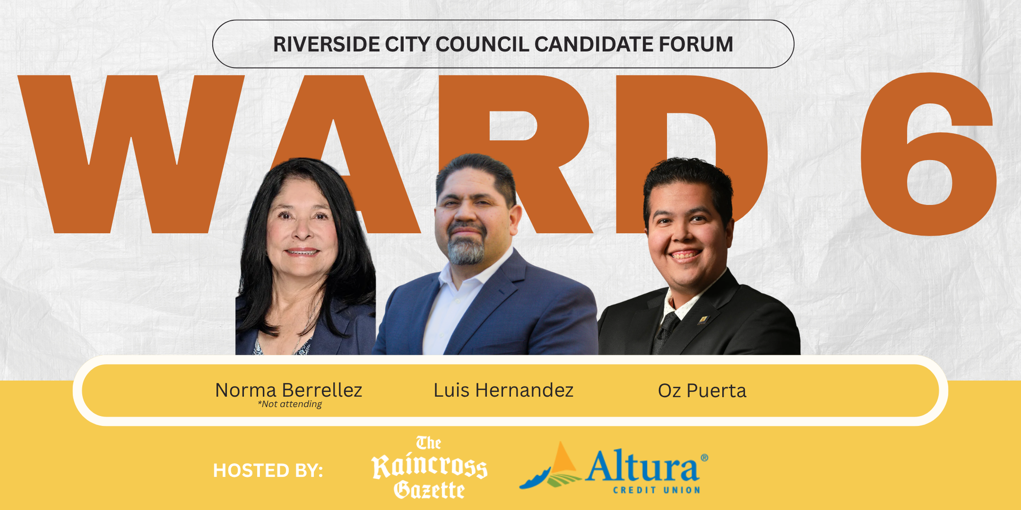 - Raincross Gazette: Ward 6 Community Forum at Altura Credit Union (10725 Magnolia Ave.)
