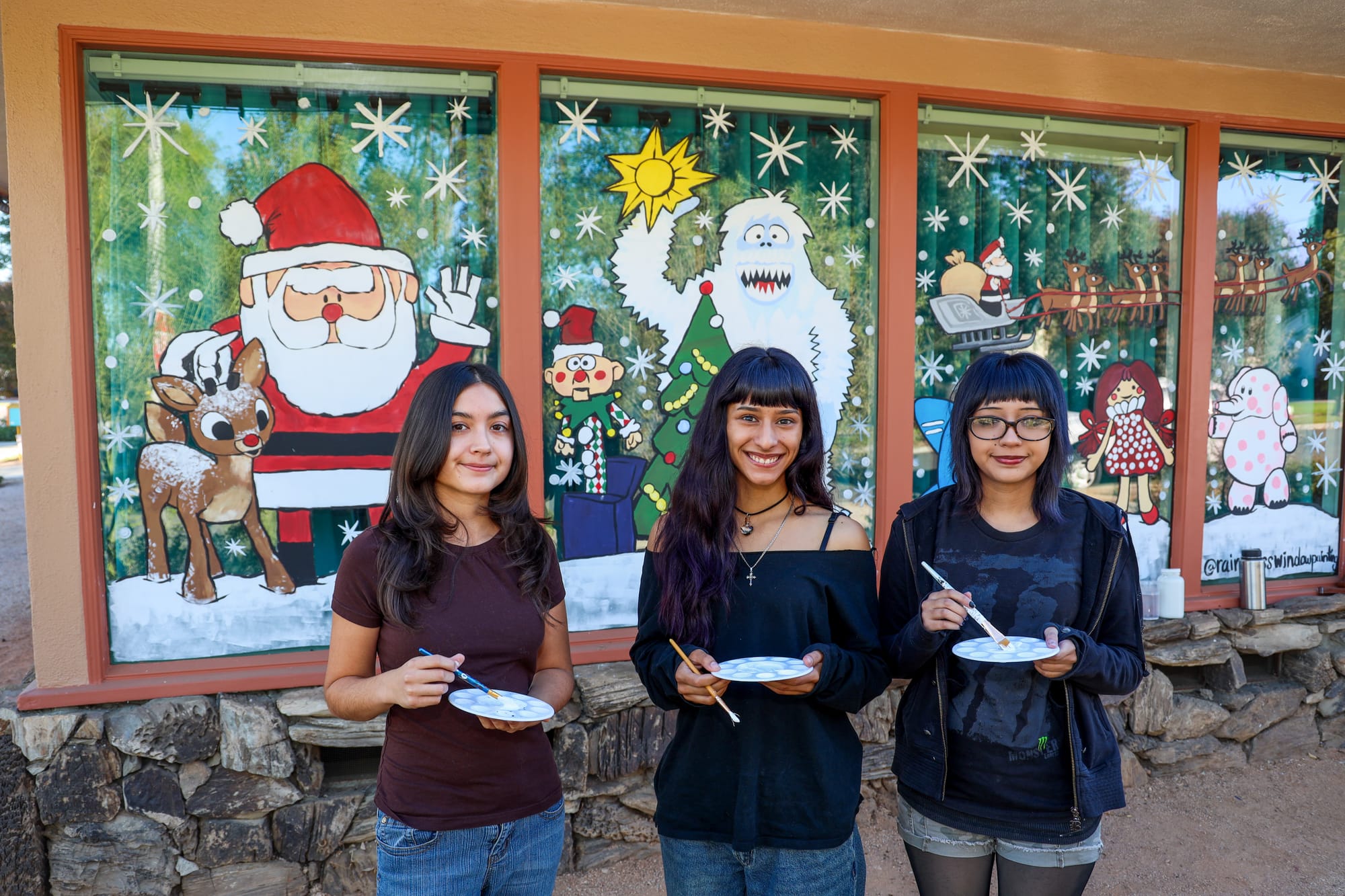 RCC students Jewell, Ariel and Felicity bring hand-painted nostalgia to neighborhood windows.