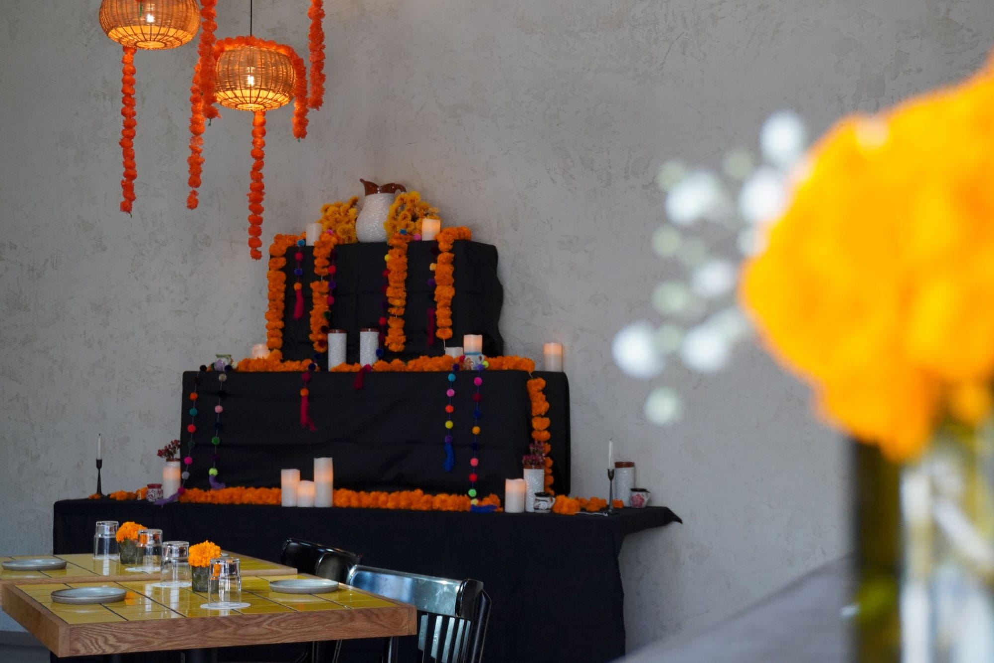 Bar Ni Modo in The Farm House Collective is hosting a community ofrenda this month, inviting guests to bring photos of loved ones who have passed along with non-perishable items that represent them. The tradition honors the centuries-old Mexican custom of creating altars to welcome spirits back and keep their memory alive.