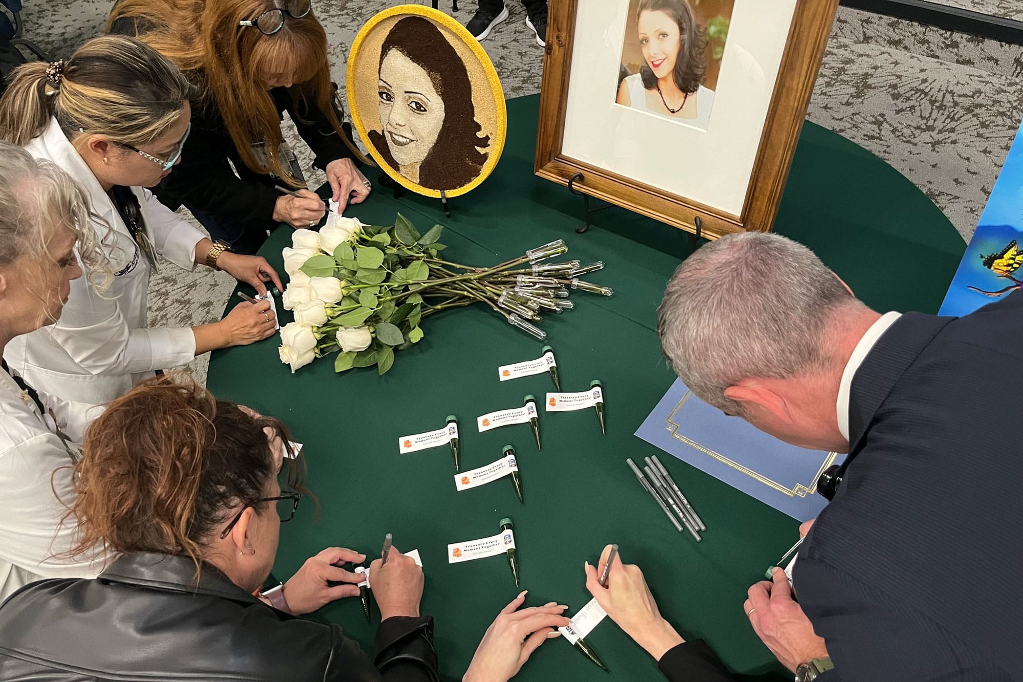 Fedele-Fennell's family gathered at Riverside Community Hospital in early December where they viewed her portrait, which will be made entirely of flowers and natural materials. The hospital, where Jenny spent her final days, hosted the floragraph unveiling to honor her legacy and the hospital staff who cared for her.