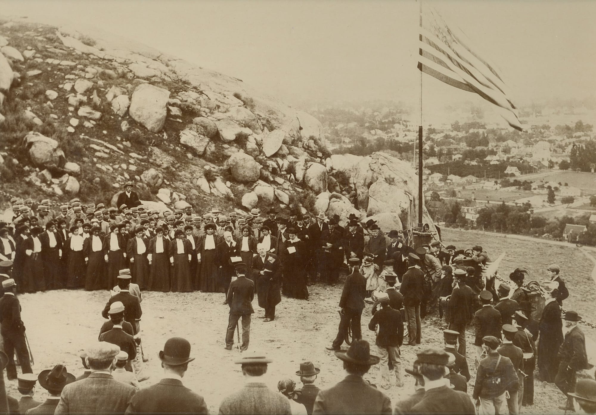 After other songs, Riis called for three cheers for the flag and then three cheers for the President. Mr. Loring then proposed three cheers for Jacob Riis, followed by three cheers for Frank Miller, who made the road and ceremony possible. The crowd responded with rousing cheers each time. This concluded the first ceremony held on the newly opened Mt. Rubidoux, an event held at Fort Chittenden.