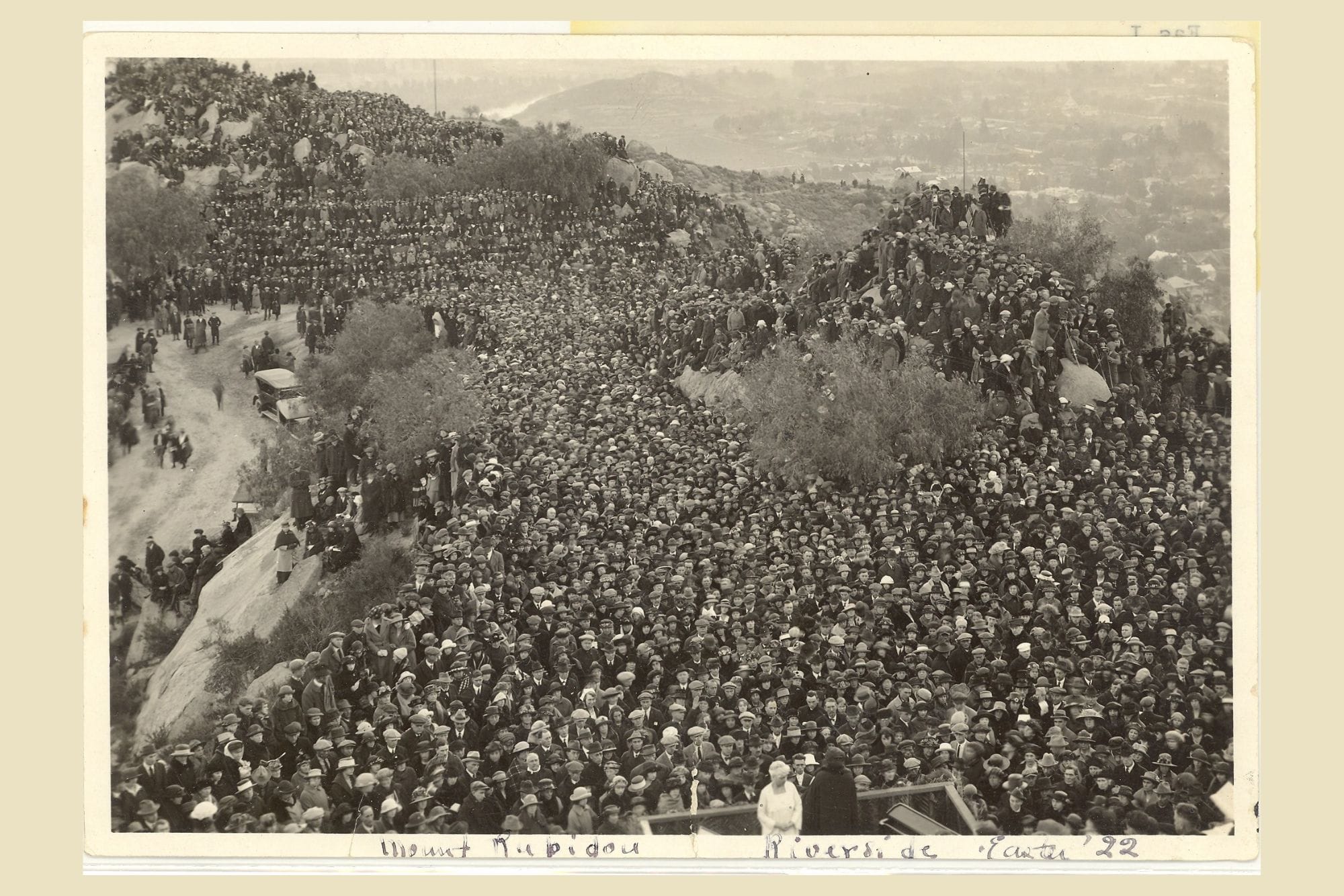 For the second annual Mt. Rubidoux Easter Sunrise Service, a soloist was added to the program. Harry Girard, the composer of the music for the Passion Play, and his wife sang solos, which became a regular feature of the Easter Sunrise Services. One regular soloist was Riverside opera diva Marcella Craft.