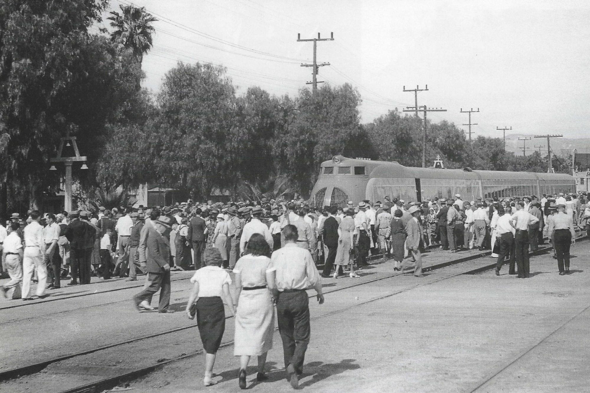 The year 1869 marked a major triumph in railroad travel. The transcontinental railroad was completed, joining the Central Pacific and the Union Pacific Railroad in Utah. Now, people could go from coast to coast by train in a much shorter time and much easier travel conditions. Five years later, Miller’s first grand adventure on the rails was in 1874, when the family left Tomah, Wisconsin, to move to Riverside, California. They went by rail from Chicago to Omaha, Nebraska, where they transferred to the new Union Pacific, taking them across the plains and into the mountains. Finally reaching Oakland, the family took a ferry to San Francisco and then a ship to Los Angeles. From Los Angeles, they traveled by train to the end of the line, which at that time was Spadra, west of Pomona. From Spadra to Riverside, the family proceeded by coach. Not until 1886, when the Santa Fe reached downtown Riverside, did the city have a direct connection.