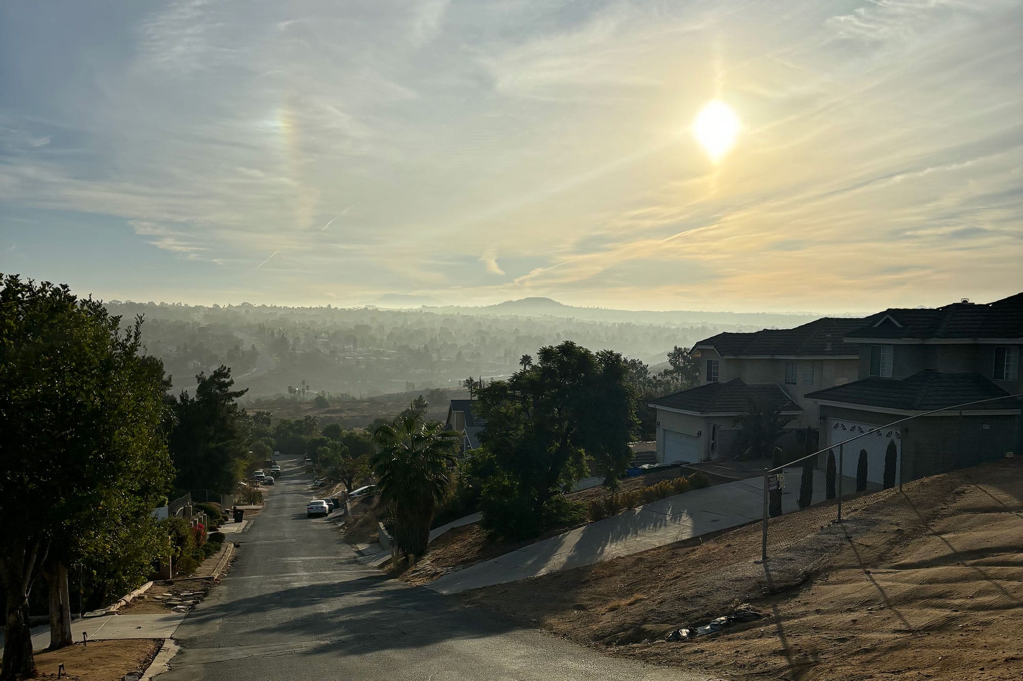 Riverside’s sun rises over Woodcrest, as soon from Canyon Ridge. (Brooke Weaver)