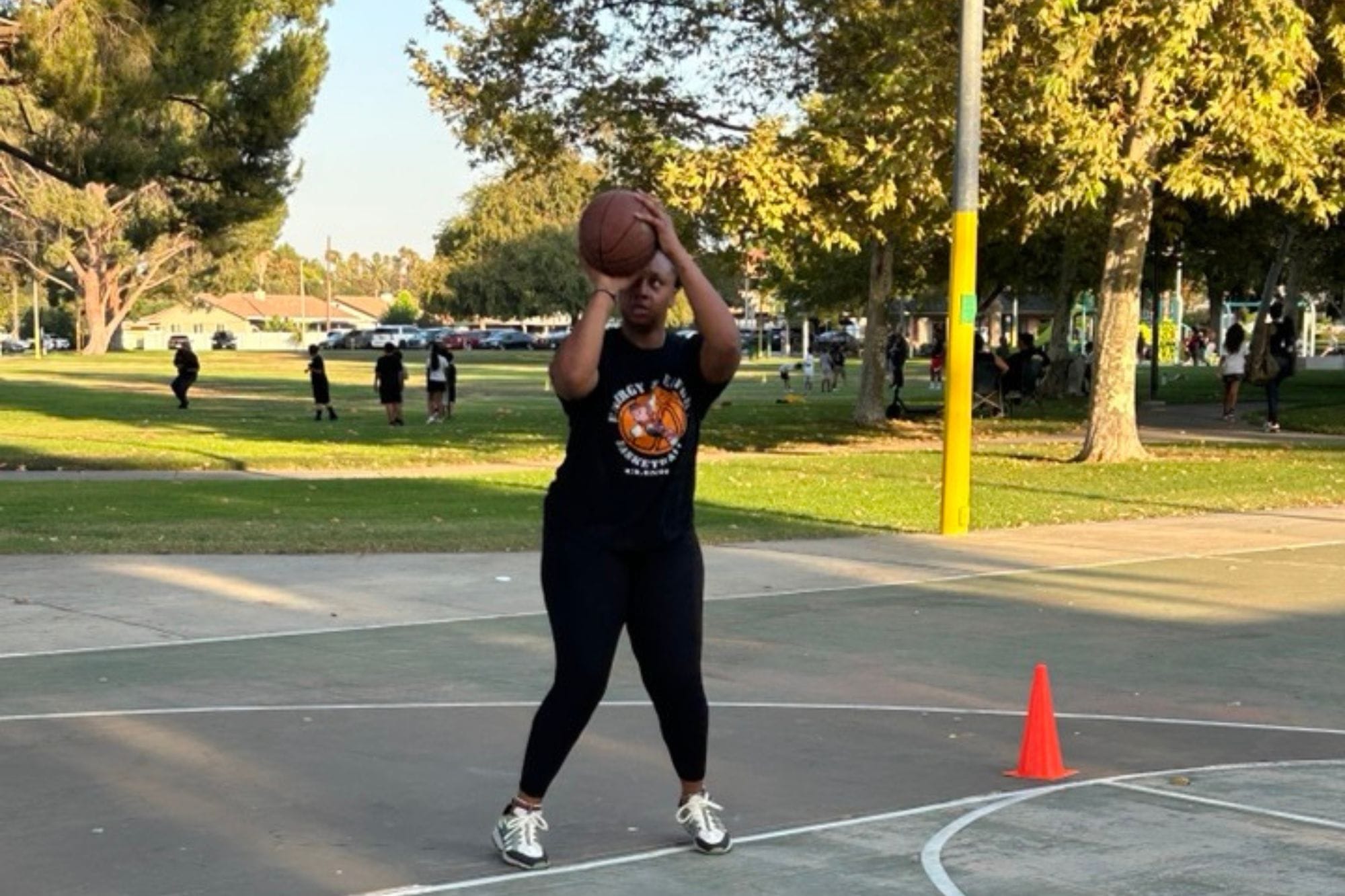 Sweat drops as a teenager dribbles the ball up the basketball court. He takes the shot from the paint, with his hands visibly tired, and misses.