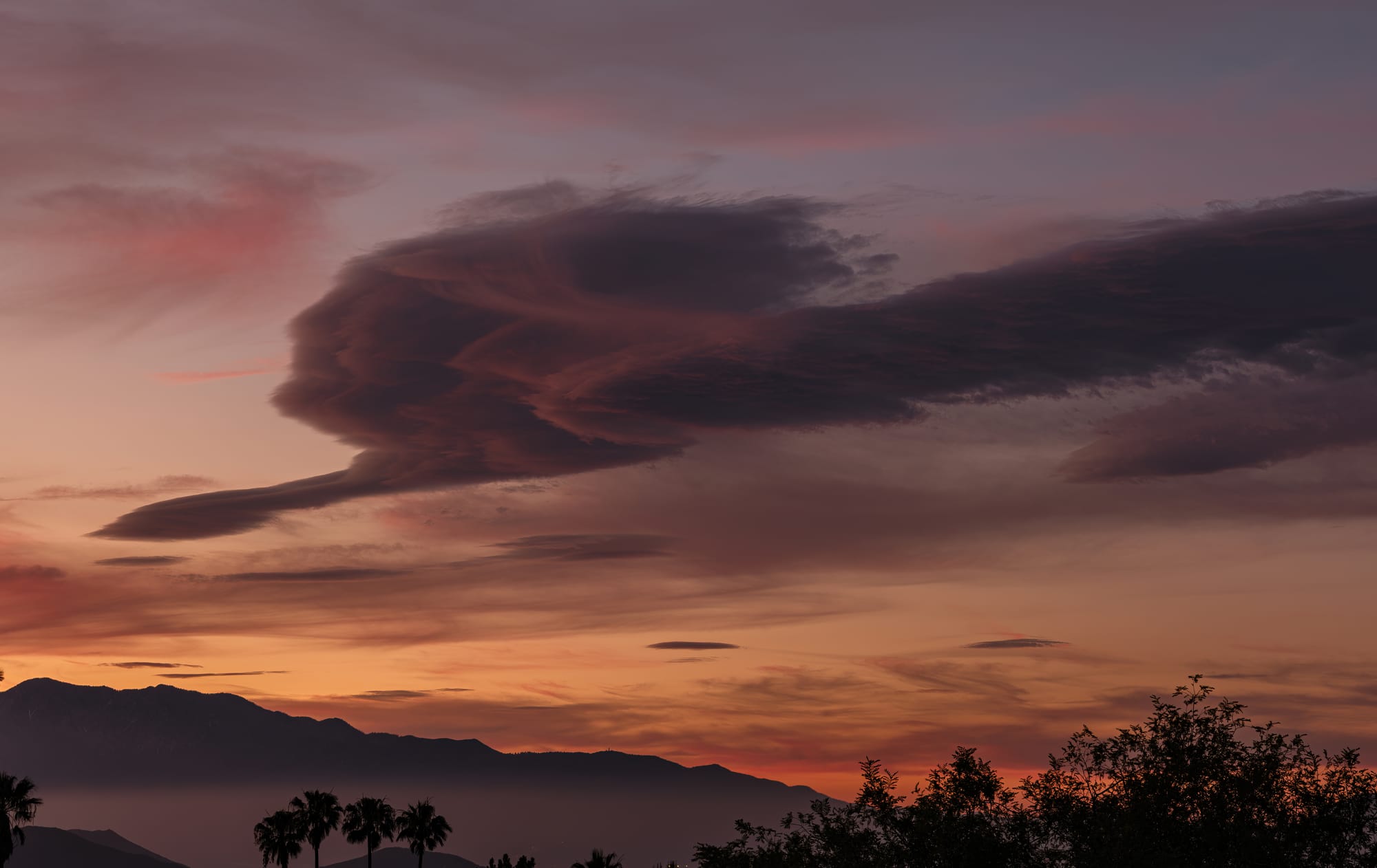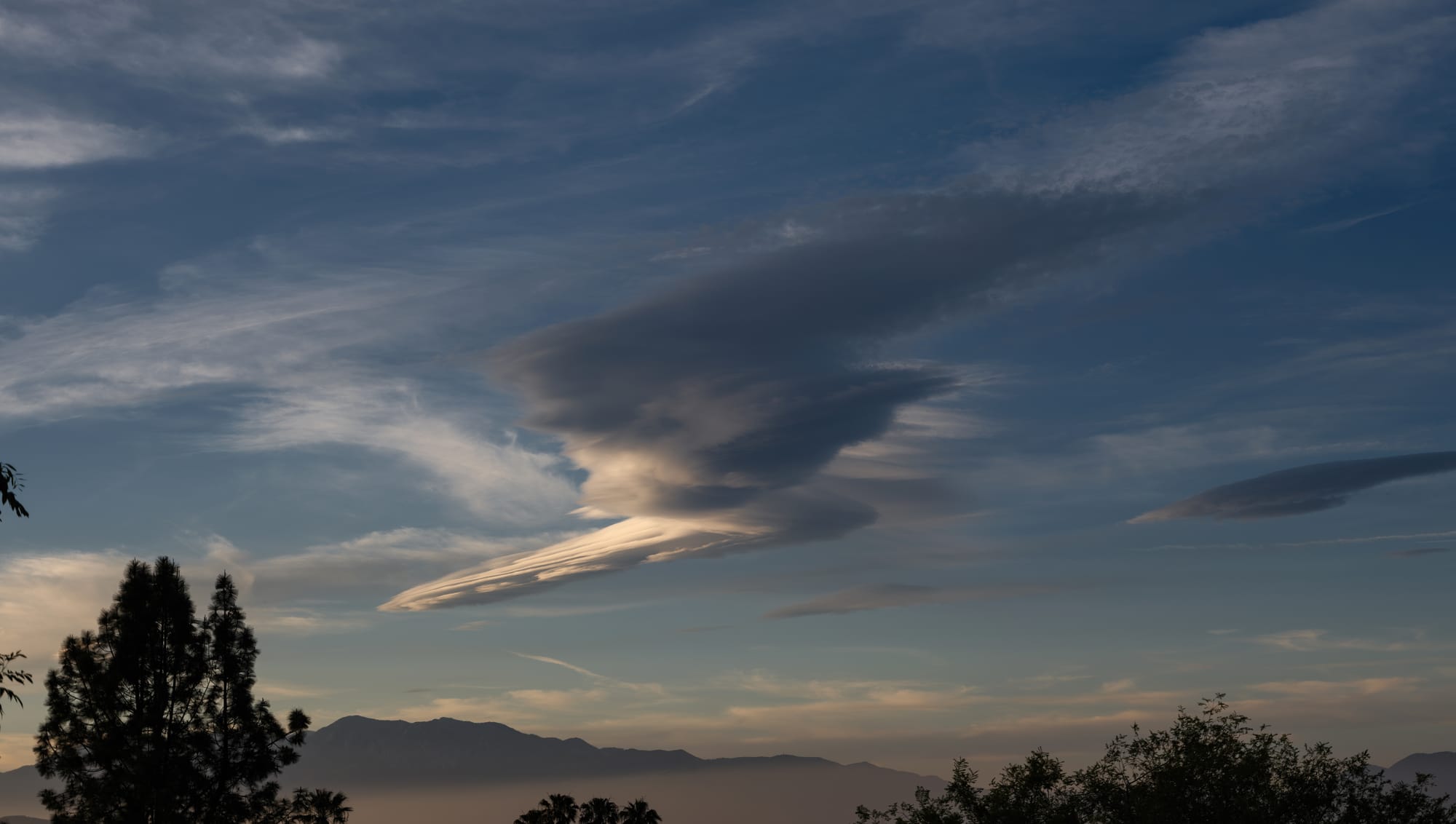 Lenticular clouds don't show up every day. They require a specific combination of stable, moist air and terrain to force it upward — typically a mountain peak or ridge — creating a smooth, lens-shaped formation that hovers in place while the wind passes through it. So when one appears in the late afternoon with sunset approaching, that's your cue. Drop what you're doing, grab your camera, and get ready.