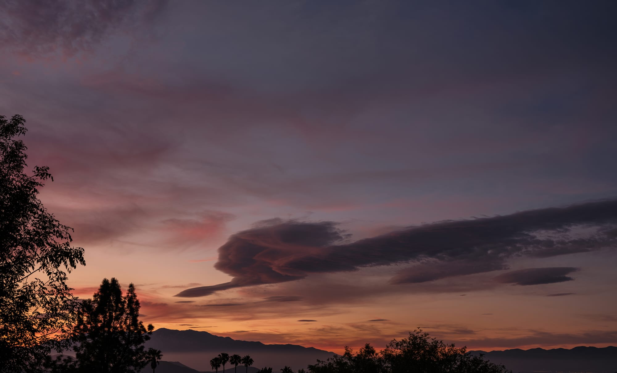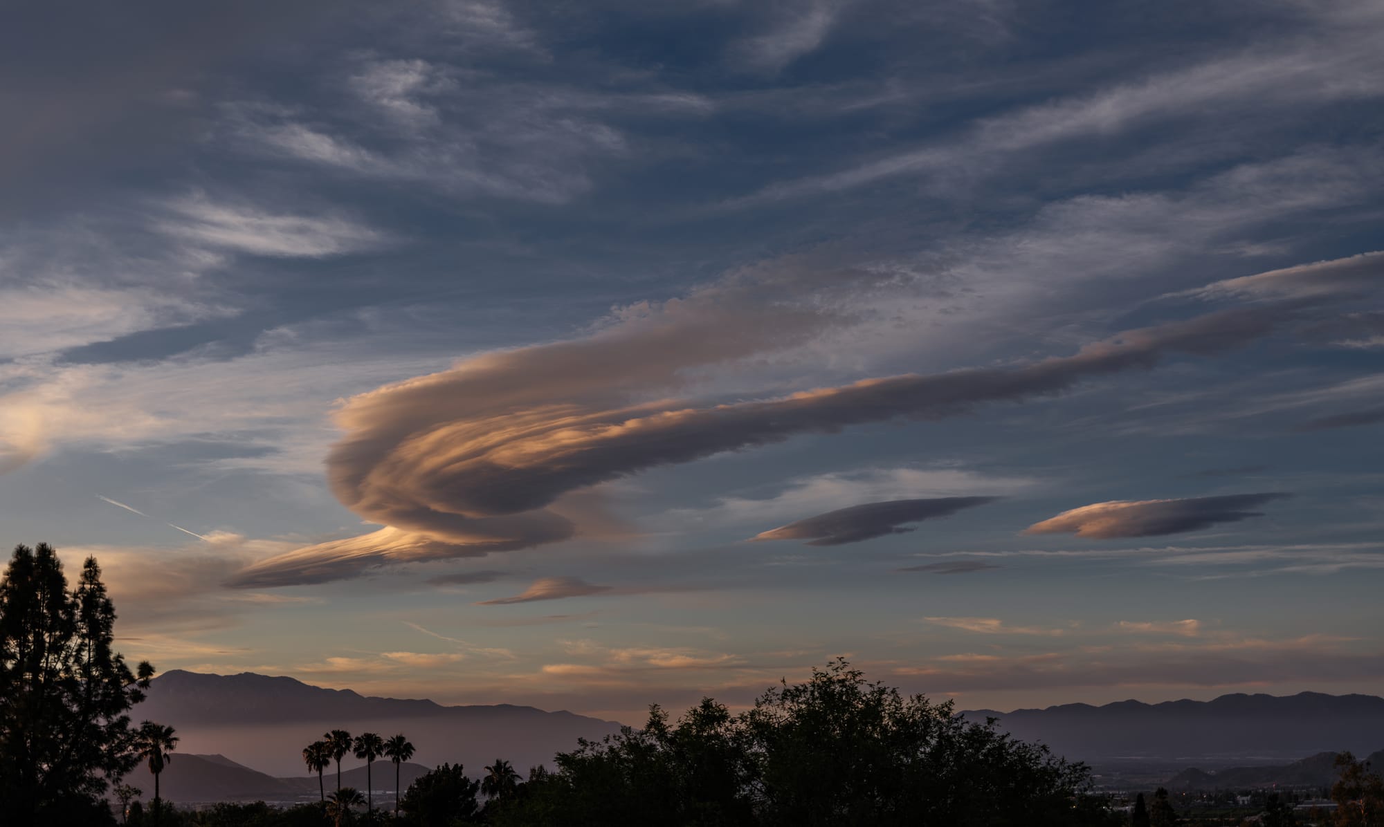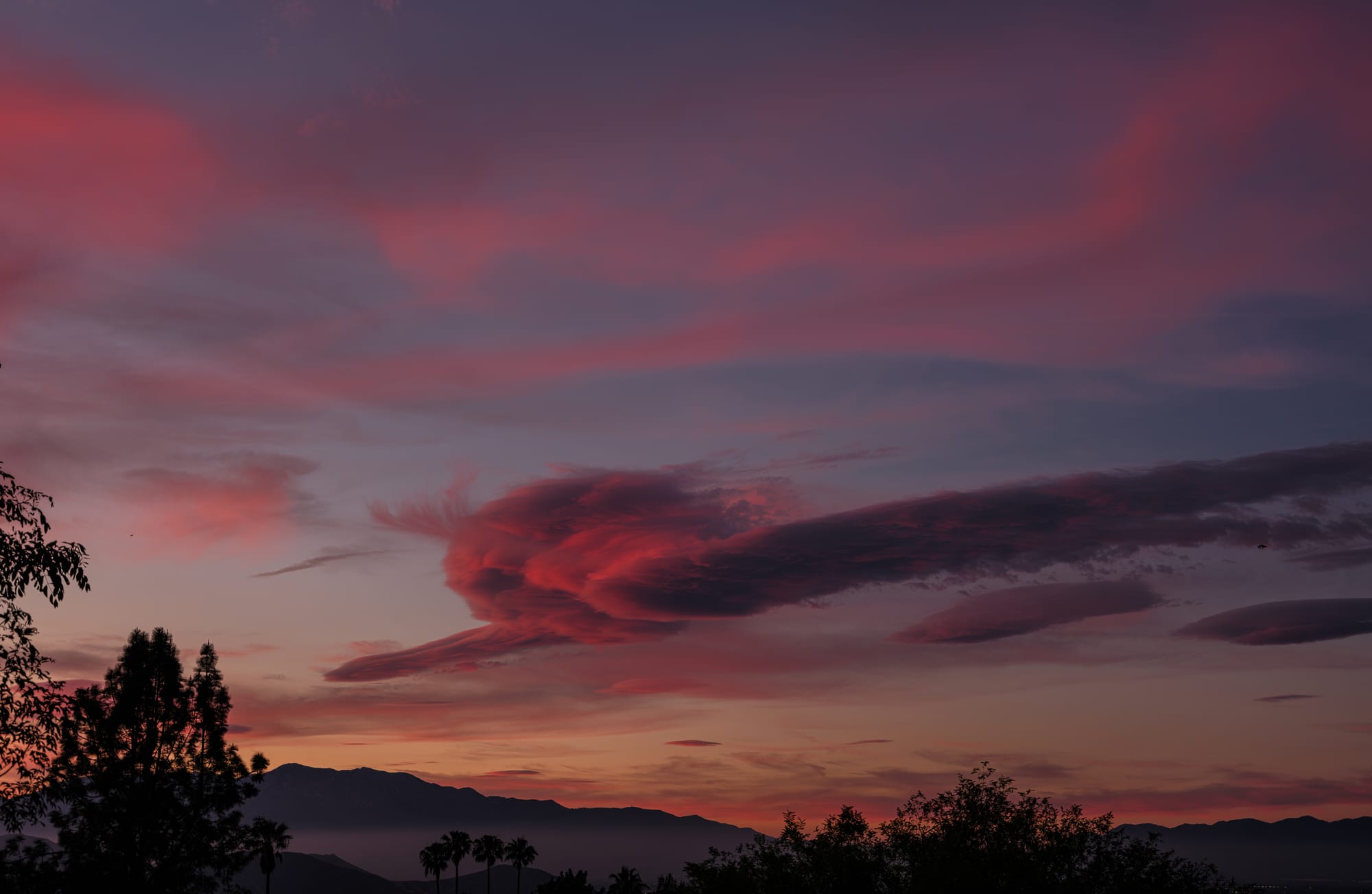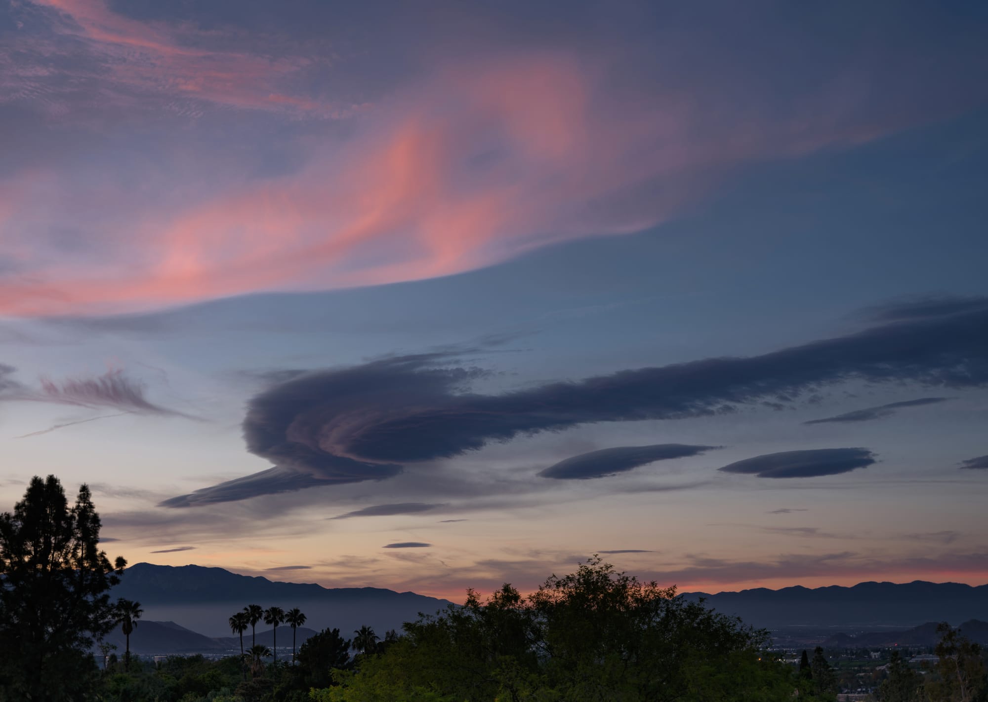 But the sunset wasn't yet ready to yield its impact. Other high clouds began to take on color as the lenticular cloud itself started to fade.