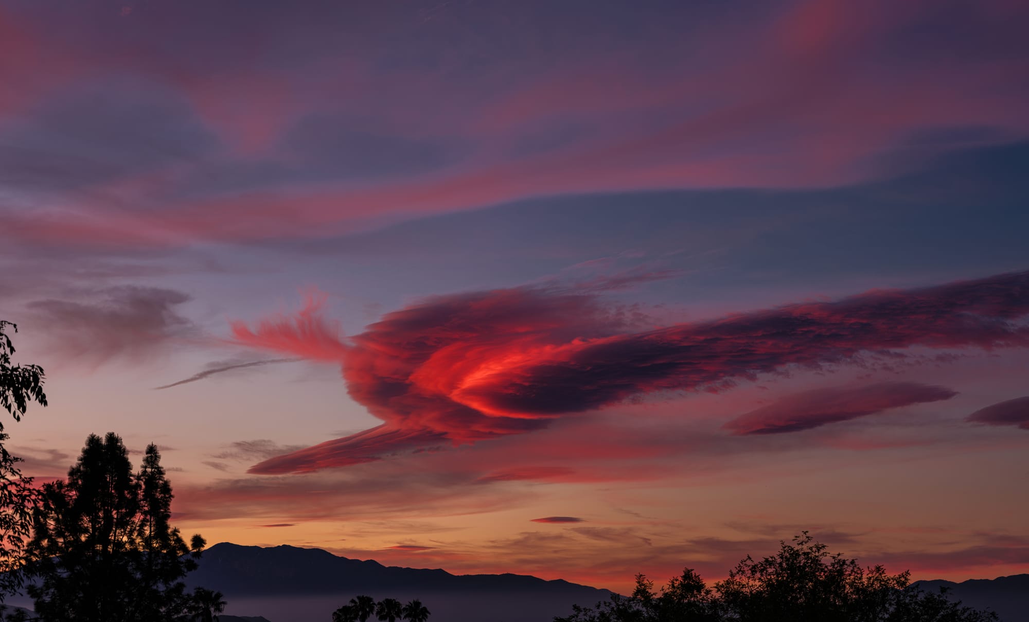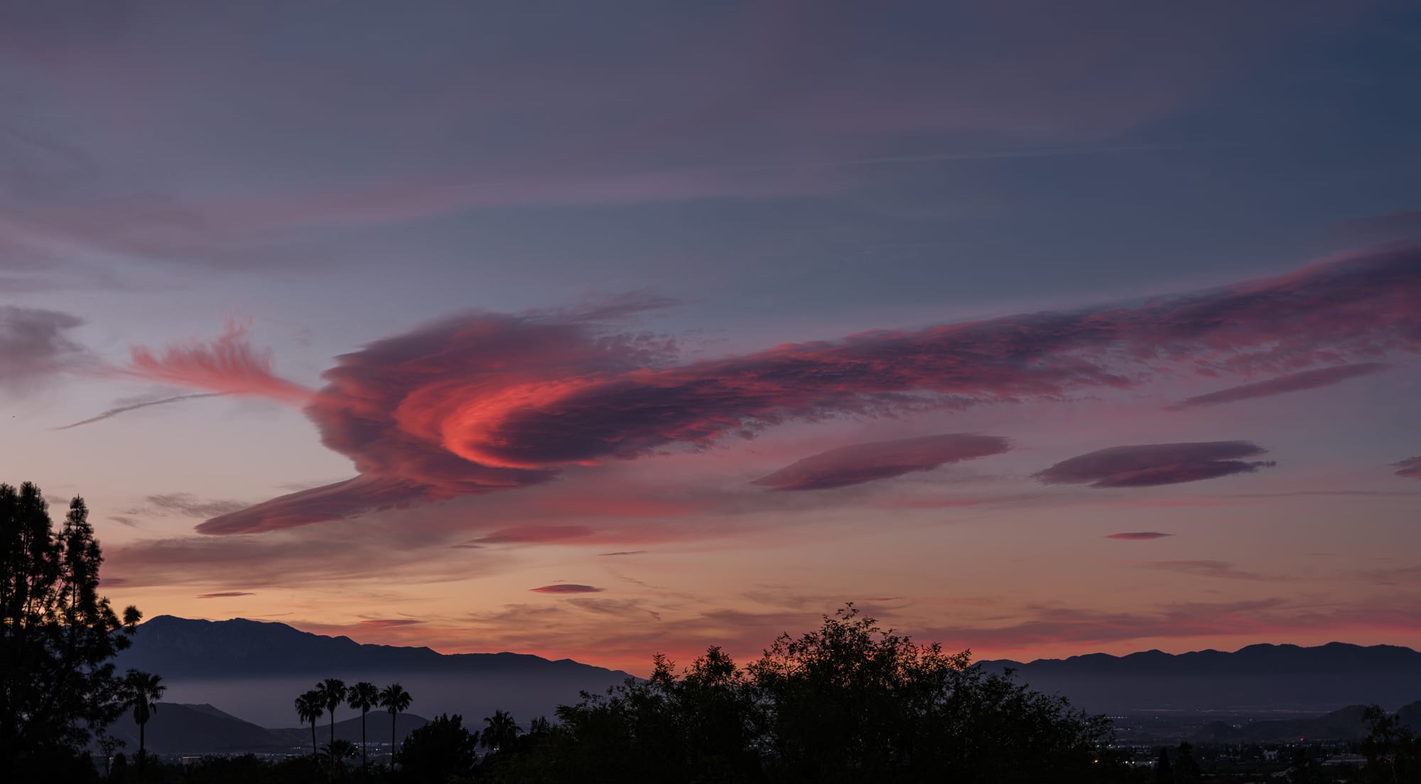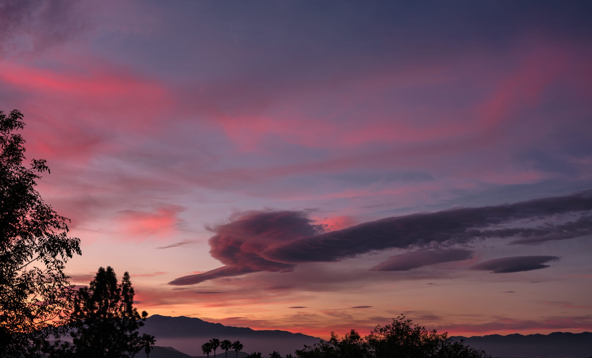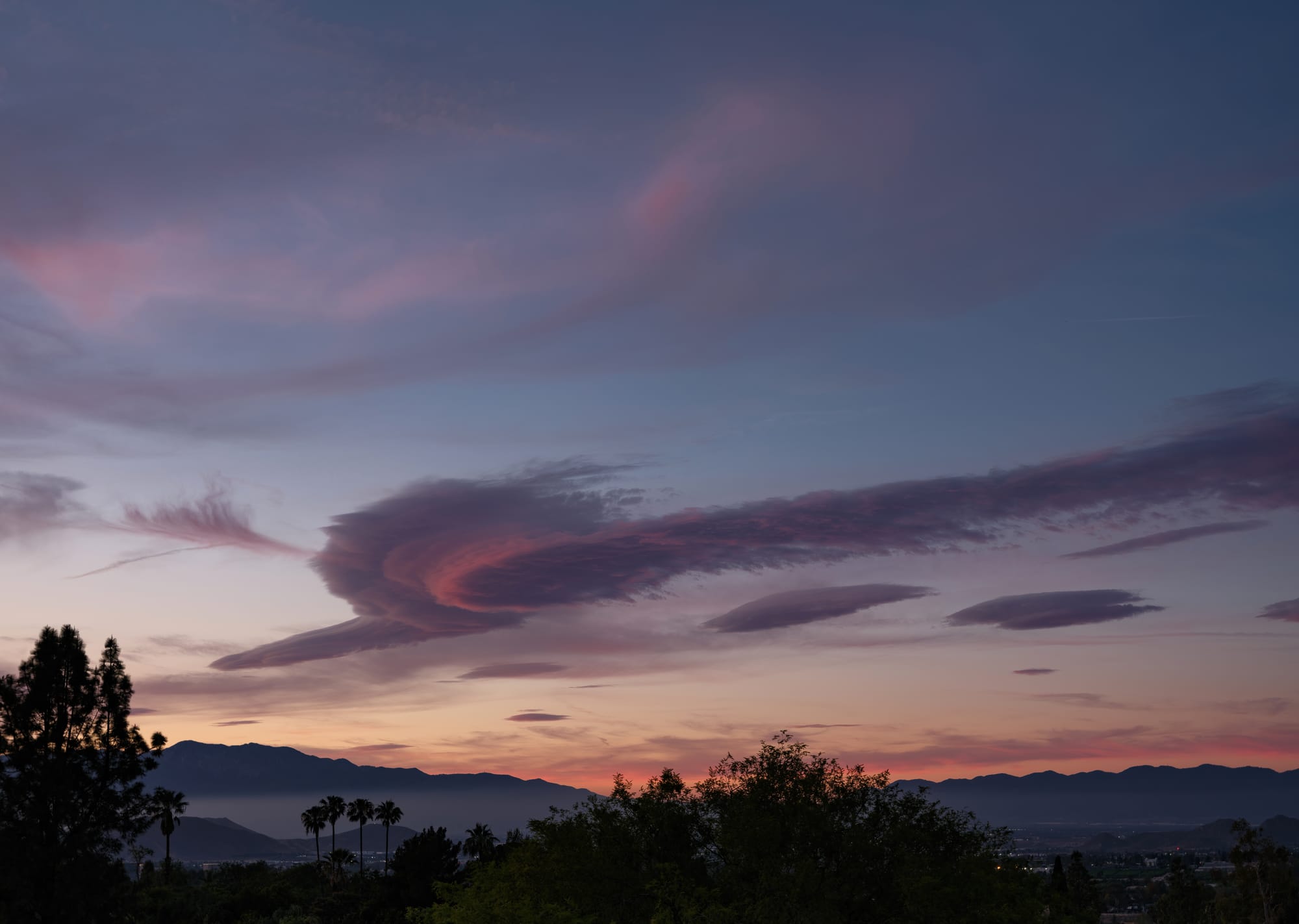 But the sunset wasn't yet ready to yield its impact. Other high clouds began to take on color as the lenticular cloud itself started to fade.