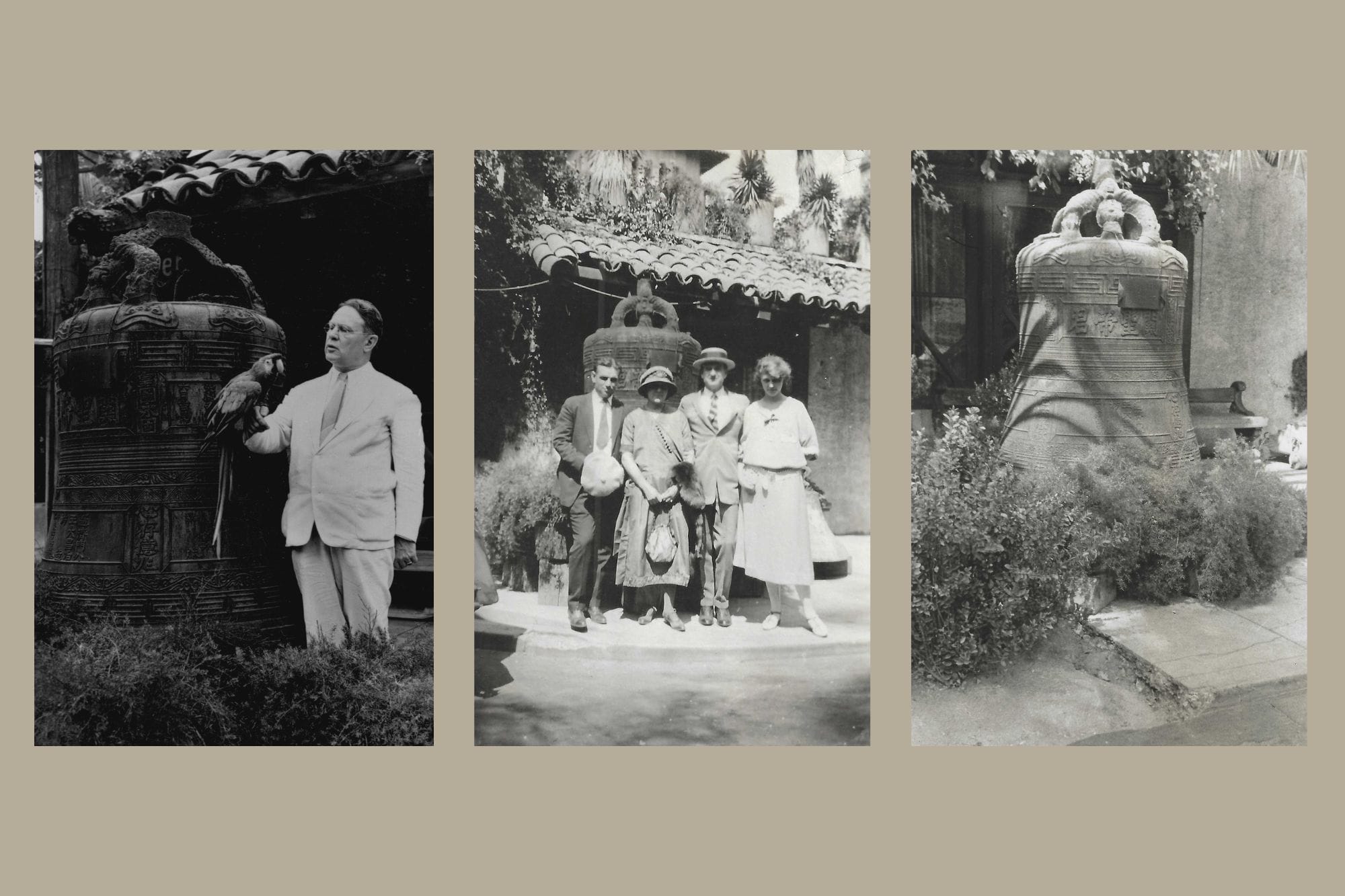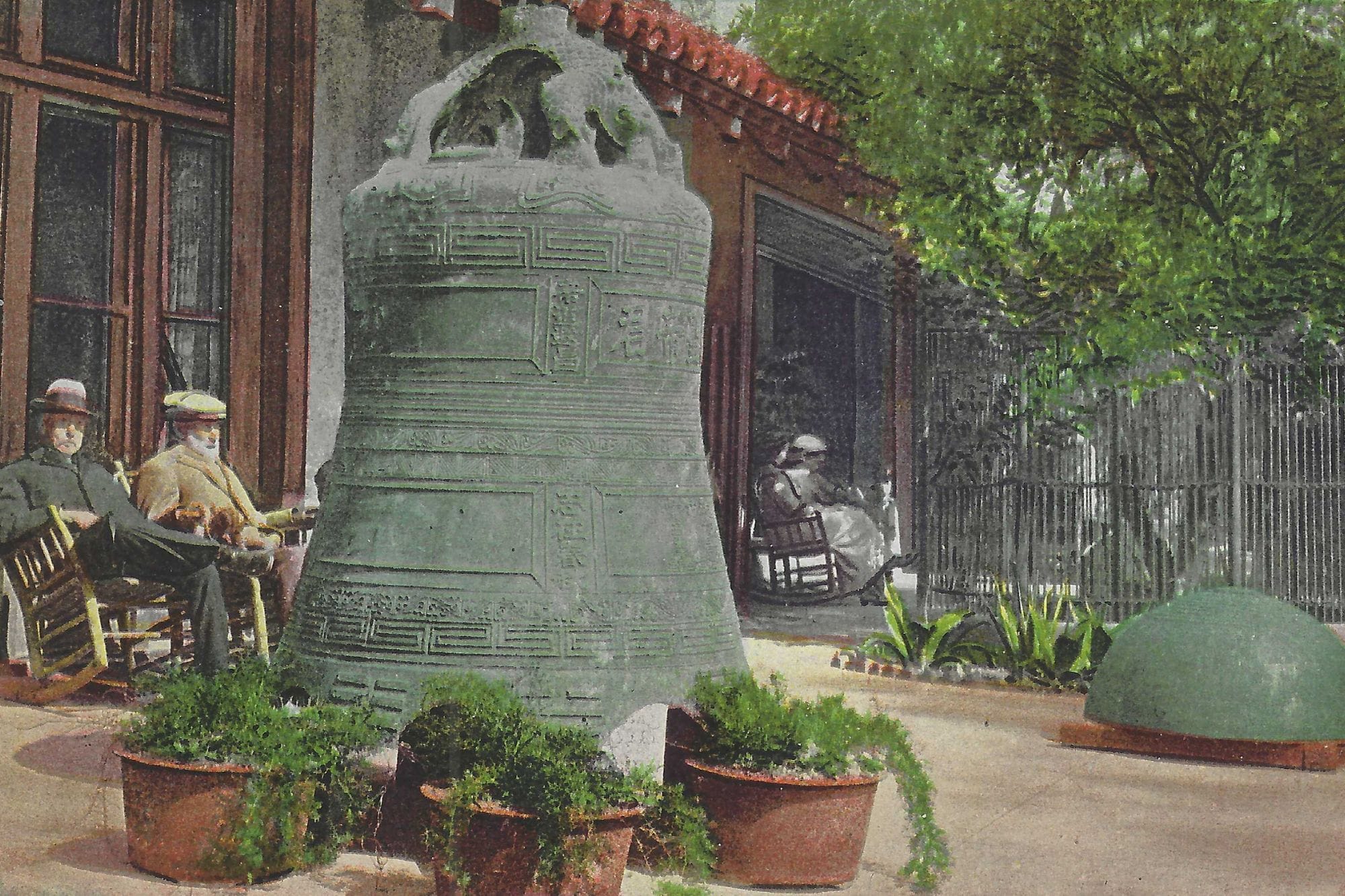 A year later, on March 26, 1913, the most significant and largest find from the Hutchings' trip arrived in Riverside. While spending a week in China, they discovered a magnificent bell in the ruins of a temple in Nanking, China. DeWitt and Allis proceeded to negotiate for the bell and bring it to Riverside.