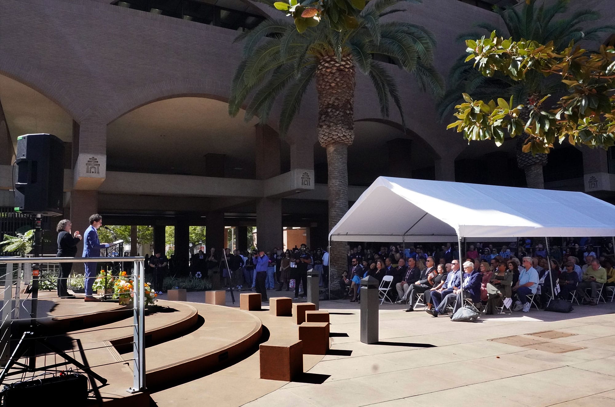 What's new: The ceremony unveiled a new Raincross sculpture by Rico Alderette.
