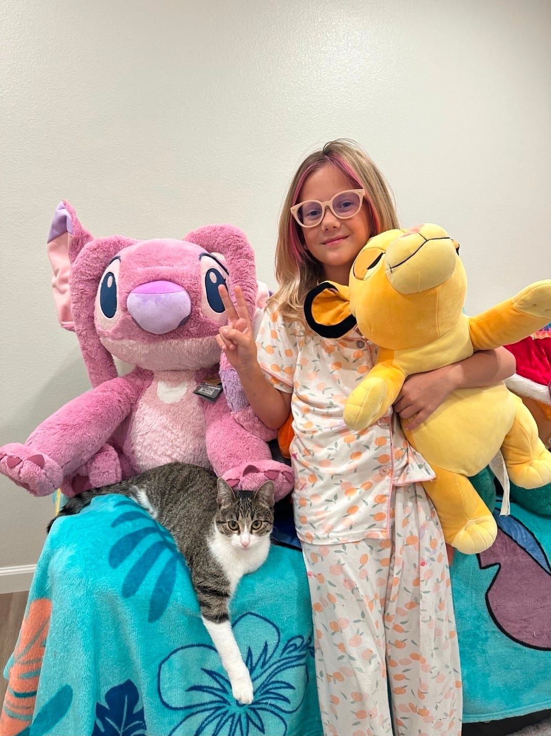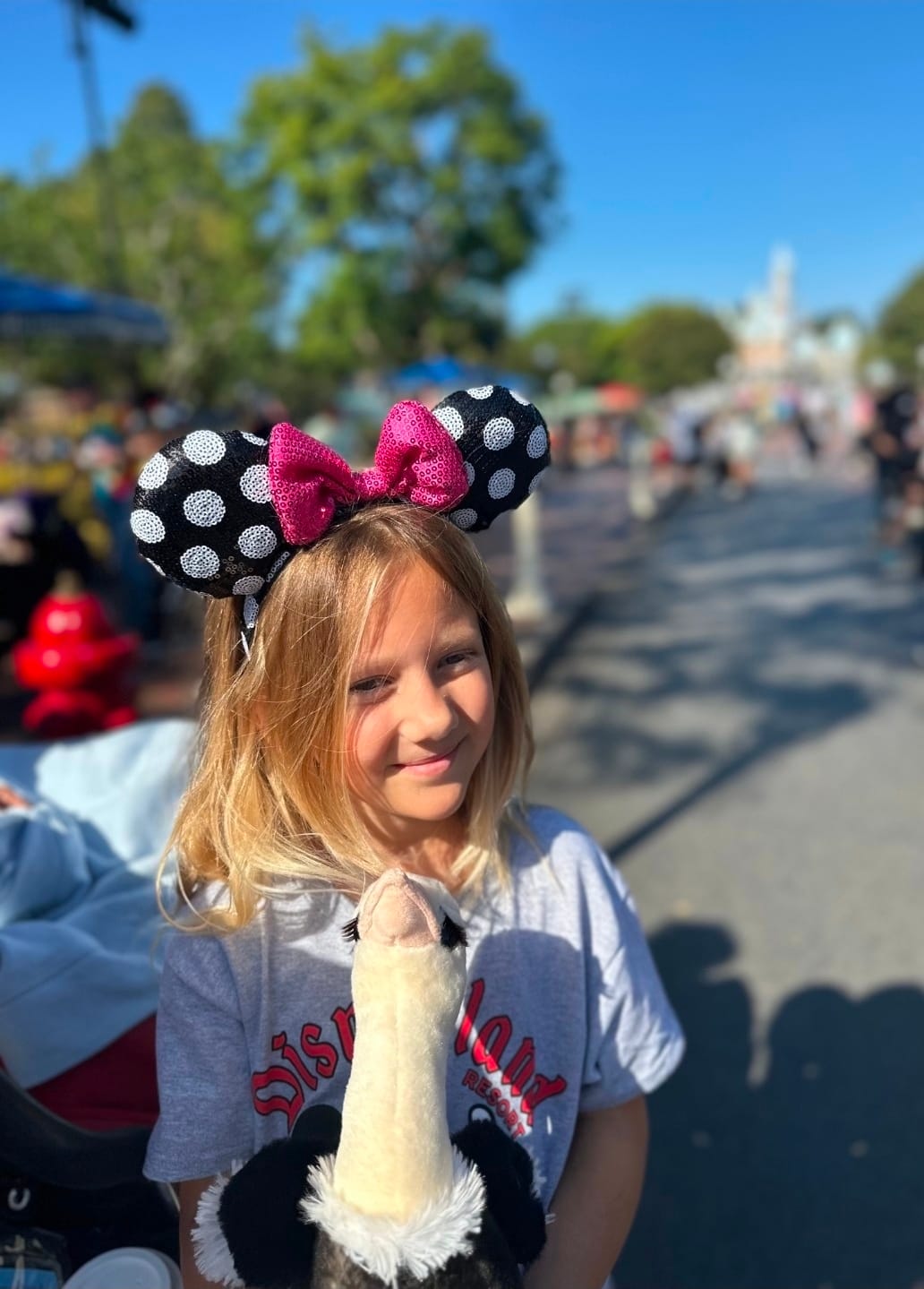 From top left: Meliia celebrates her Disneyland adventure with her parents and shows off souvenirs from the trip, her joyful smiles reflecting the magical experience made possible by Riverside community support. (Courtesy of Alina Kondakova)